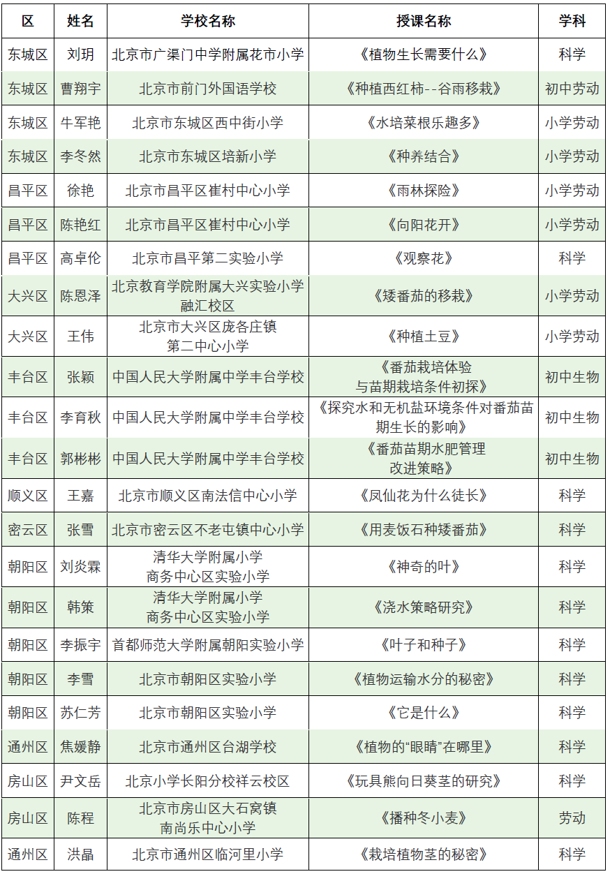 北京市少年宫还公布了市级优质公开课名单,来自各区的27节公开课“上榜”。记者注意到,老师们的公开课主题多样,多与科学、生物和劳动课有关,比如,《植物生长需要什么》《凤仙花为什么徒长》《植物的“眼睛”在哪里》《大蒜的神奇一生》等等。