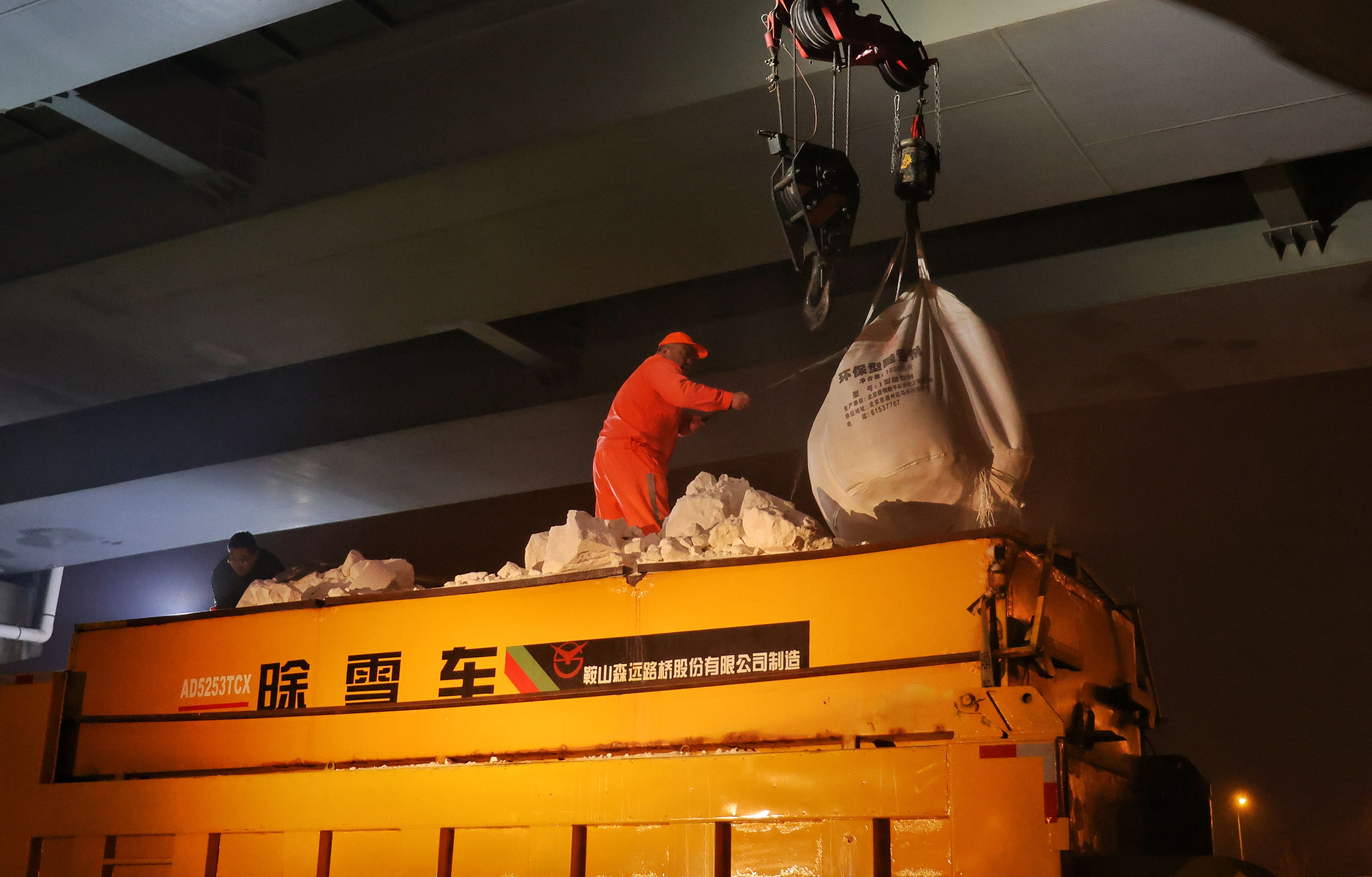 工作人员正在处理融雪剂。新京报记者 王贵彬 摄
