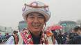 天安门国旗护卫队战士雪中执勤。