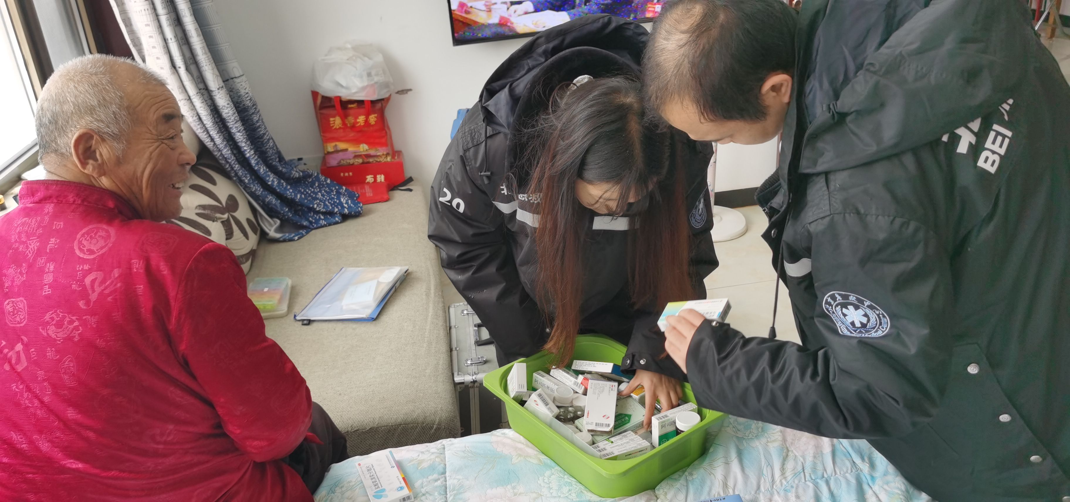 家医团队检查杨德顺药箱。门头沟区卫健委供图