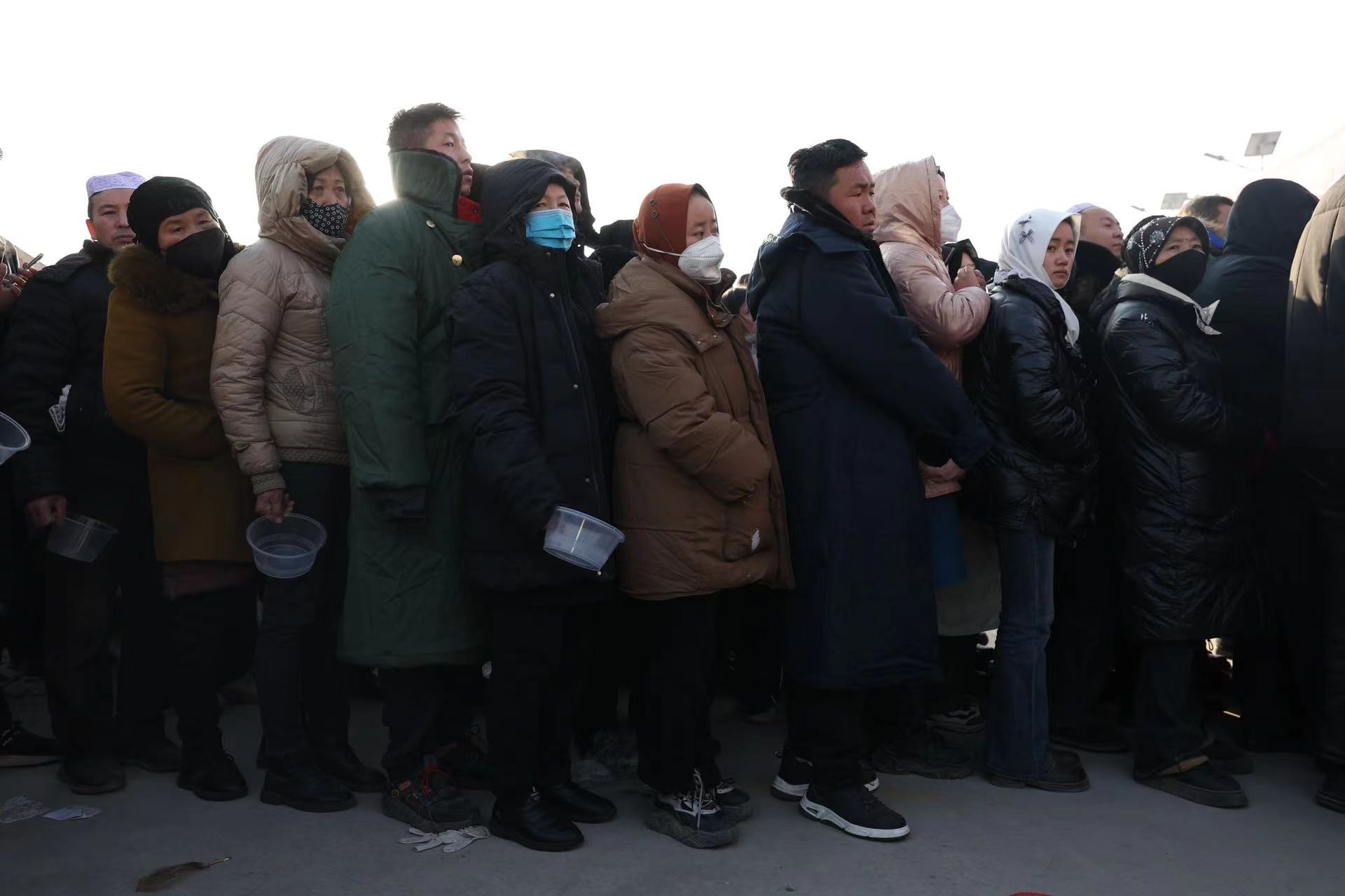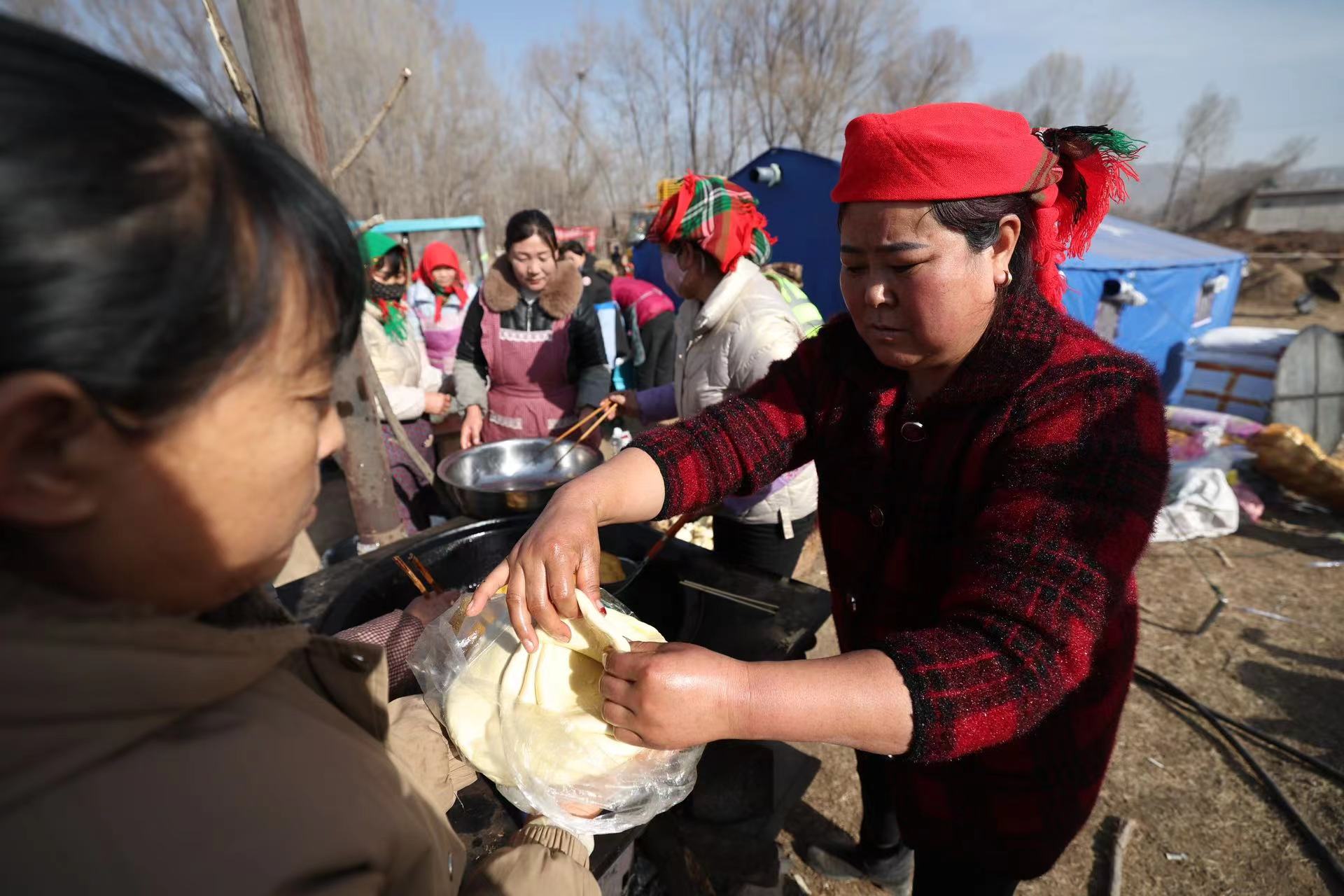 当地群众自发前来为救援人员及受灾群众制作“油香”。
