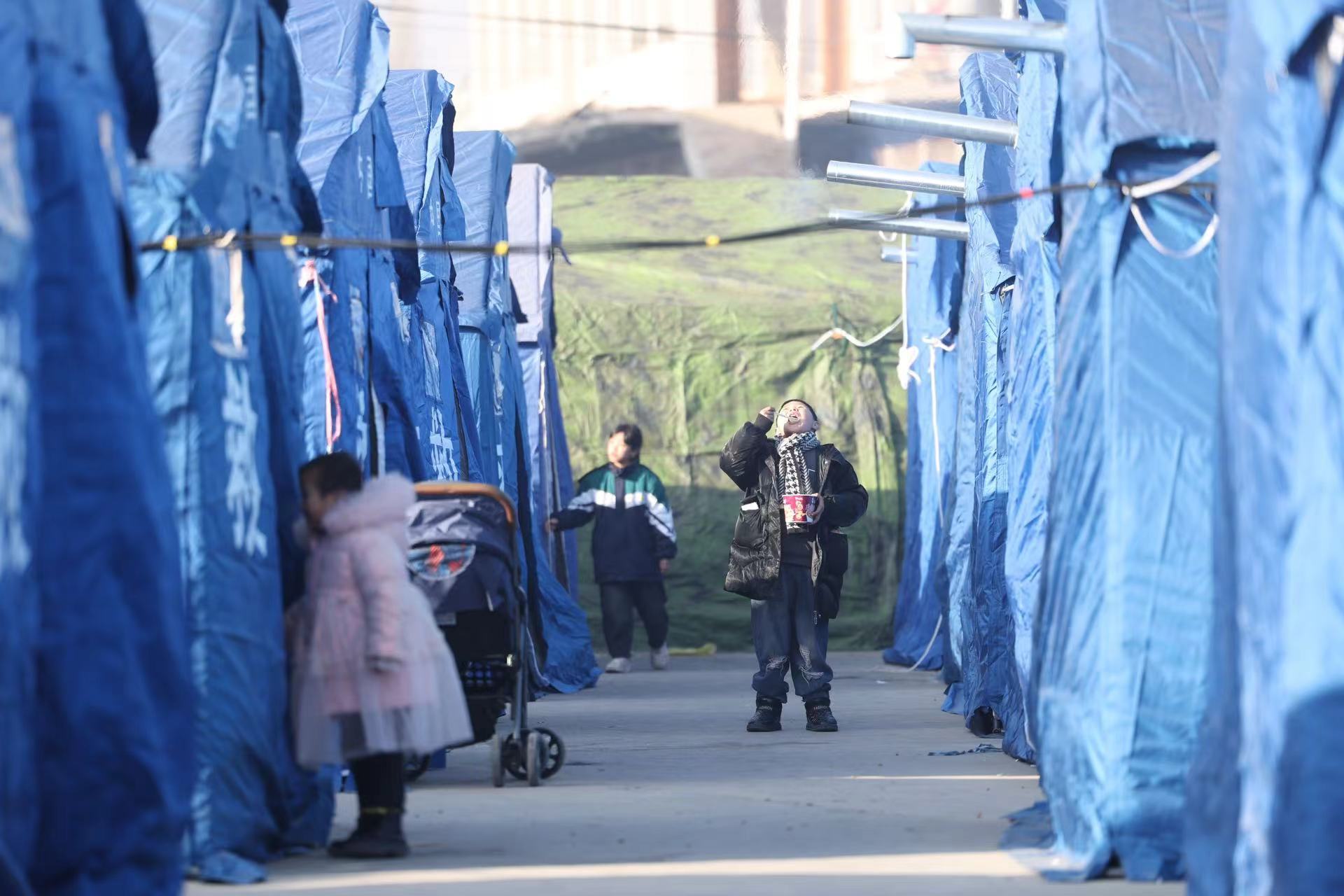 在本次地震核心受灾地区积石山县大河家镇临时安置点内,救援人员已经搭建了160多顶救灾帐篷。近日,积石山夜间最低气温在零下10 ℃以下,走进帐篷,记者看到里面配备了火炉、取暖物资和照明设备,这让受灾群众处于温暖环境、喝上热水、吃上热饭。