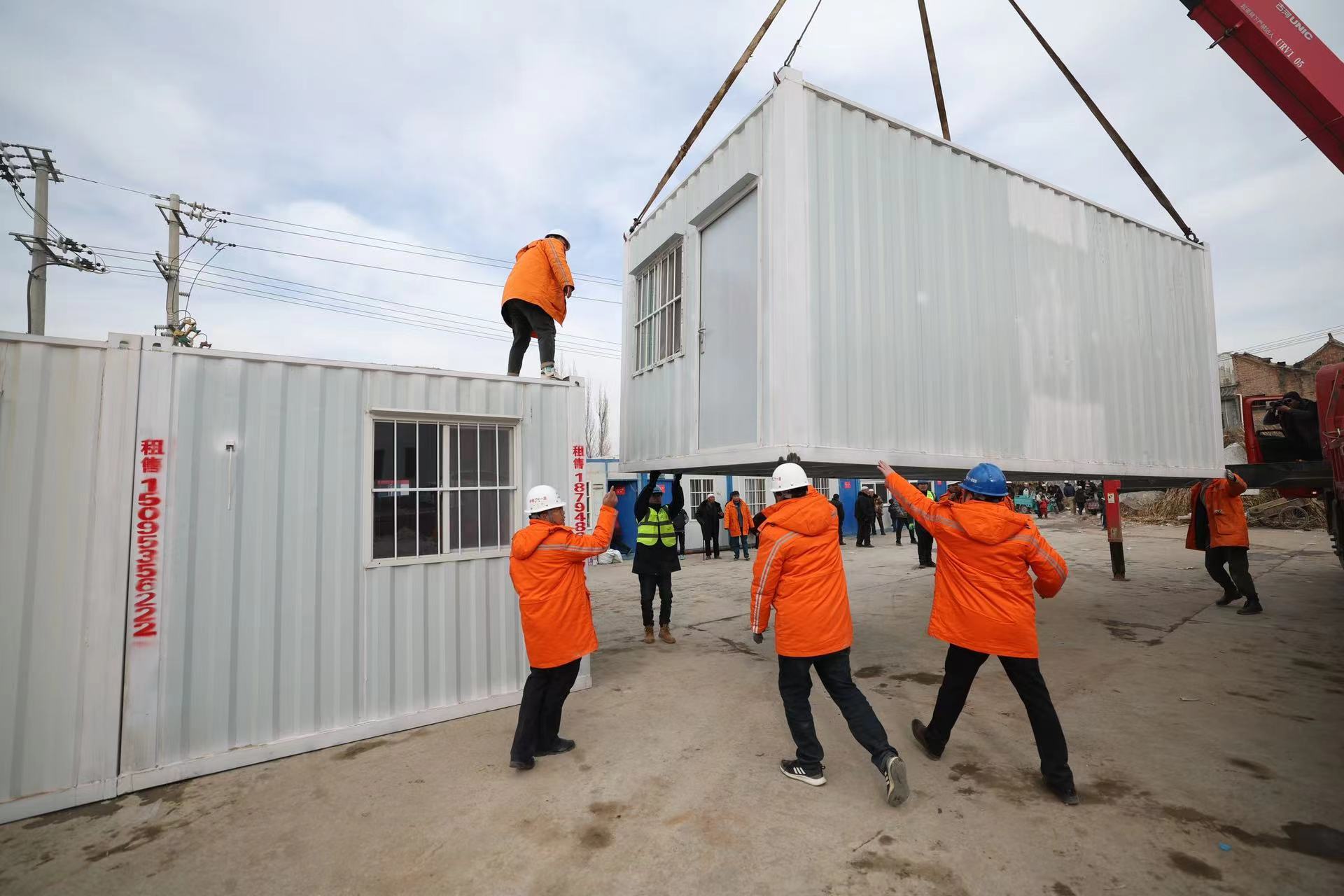 中铁二十一局四公司总经理祁涛介绍:“在大河家镇梅坡村,我们紧急修建了36间集装箱式彩钢板房,可以安置200多名受灾群众。目前,中铁二十一局调集100余人,在村广场、梅坡村六社和十社,梅坡村党群服务中心搭设活动板房,预计20日晚上完成160间,配套床位、被褥和火炉等必备物品。”