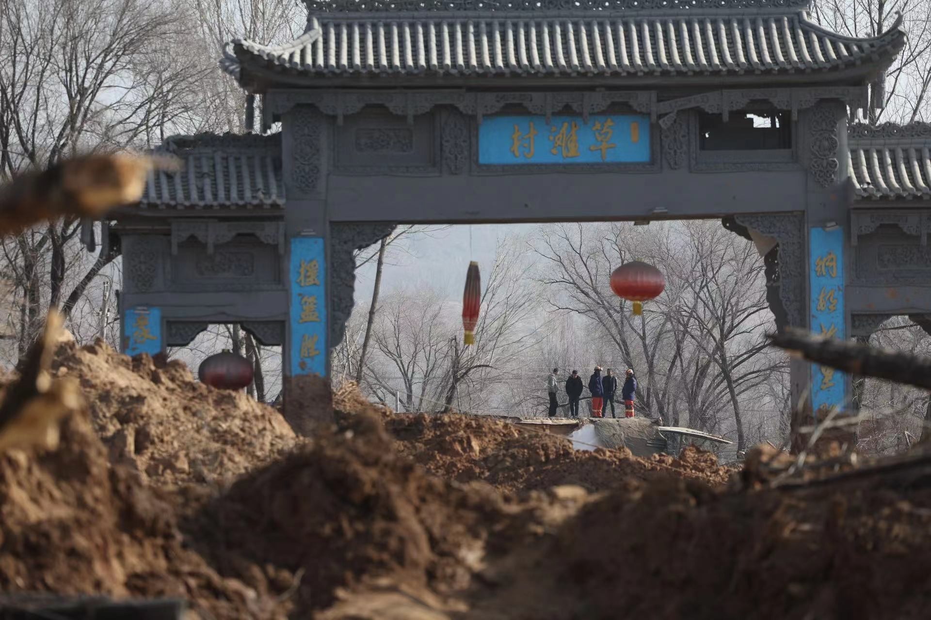 12月20日,地震引发青海海东民和县中川乡发生局地砂涌,中川乡草滩村部分房屋被包围、掩埋(航拍)。