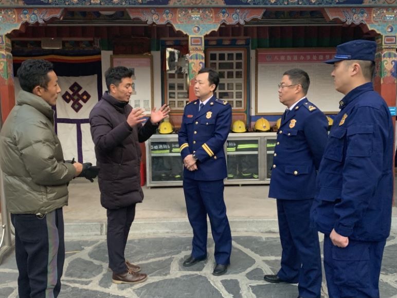 谭远林(右三)在检查大昭寺消防工作。受访者供图