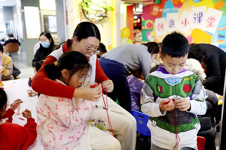 12月23日,长安商场,小朋友正在创意小课堂上手工课。今年长安商场得到了西城区政府的大力支持,消费者可在西城消费平台领取长安专属跨年狂欢券。位于一楼的“深山集市”,各种龙年生肖服饰、新春红包等商品提前为龙年春节预热;美妆、美甲、美发等服务项目和影院推出了超值体验活动,丰富的儿童项目集合娱乐、文化等元素,让孩子们在游戏中收获新知识。