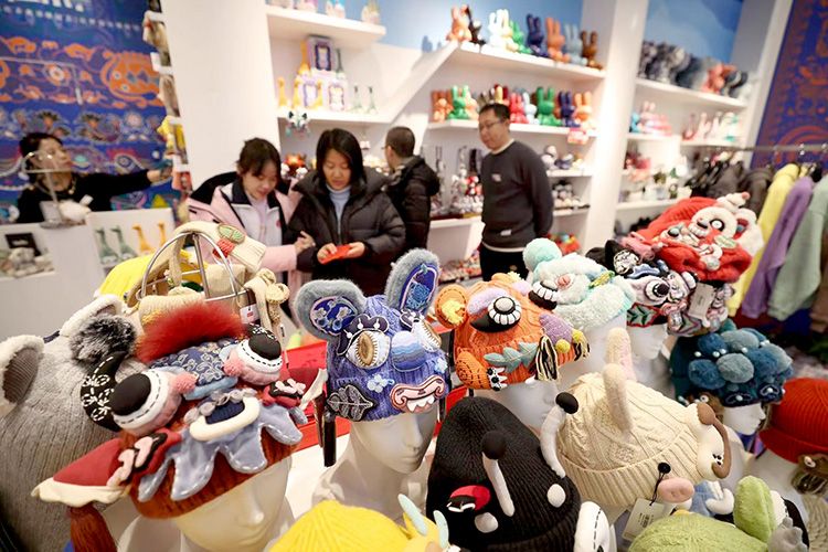 长安商场集市上,来自贵州等地区的手工艺品在深山集市上售卖。西单更新场、东城崇外、海淀印象城、侨福芳草地、枫蓝国际购物中心、万柳华联购物中心等多个商圈和近千家连锁超市将设置特色年货体验区,方便市民置办年货。