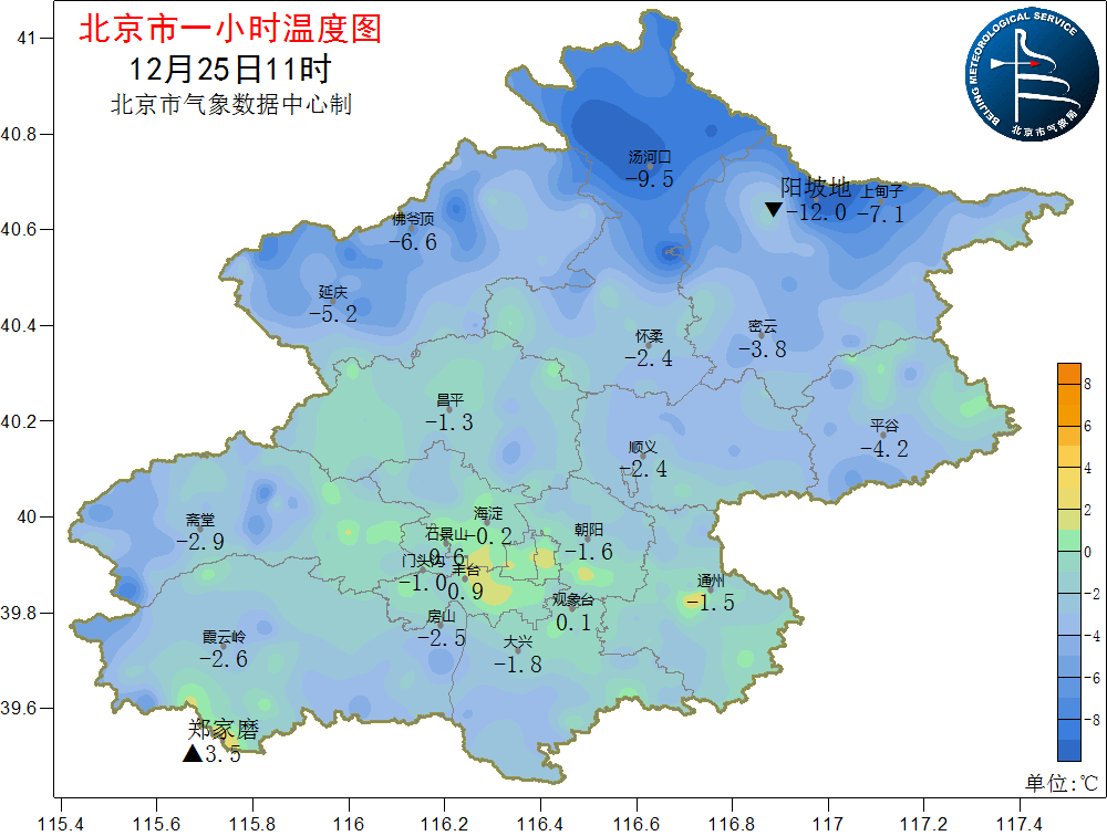 北京终于摆脱了持续低温的天气。据北京市气象局工作人员介绍,12月16日到23日,南郊观象台连续8天最低气温低于-12℃(持续低温黄色预警:连续三天及以上日最低气温低于-12℃),排名并列历史第二。此前出现这样连续低温的天气是在2001年(1月11日到1月18日)。