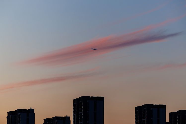 12月26日,北飞的乌鸦和南行的飞机在橘红色的幕布下相遇。