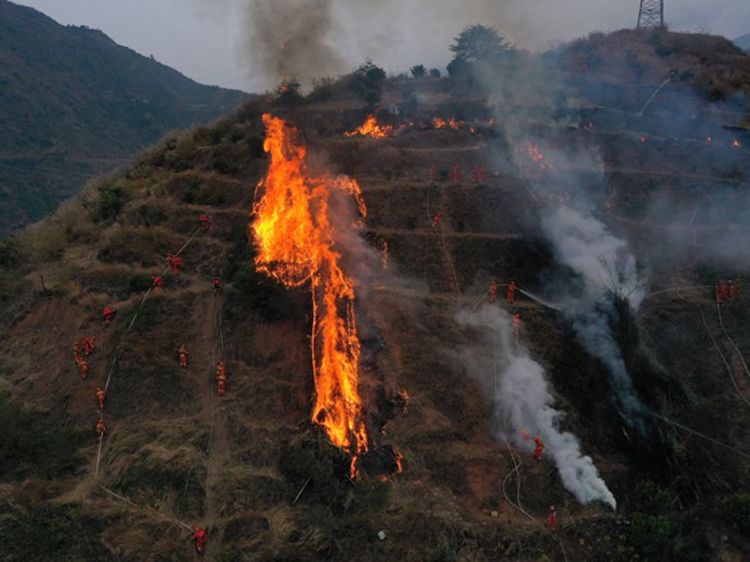 12月22日,四川雅安,四川省森林消防总队特勤大队消防员正在进行森林草原灭火实战演练。 进入12月以来,四川多地举行森林草原灭火实战应急演练,积极应对冬季森林草原防火期,不断锤炼省、市、县、乡四级联动灭火实战处置能力,全力做好冬季灭火救援准备工作。