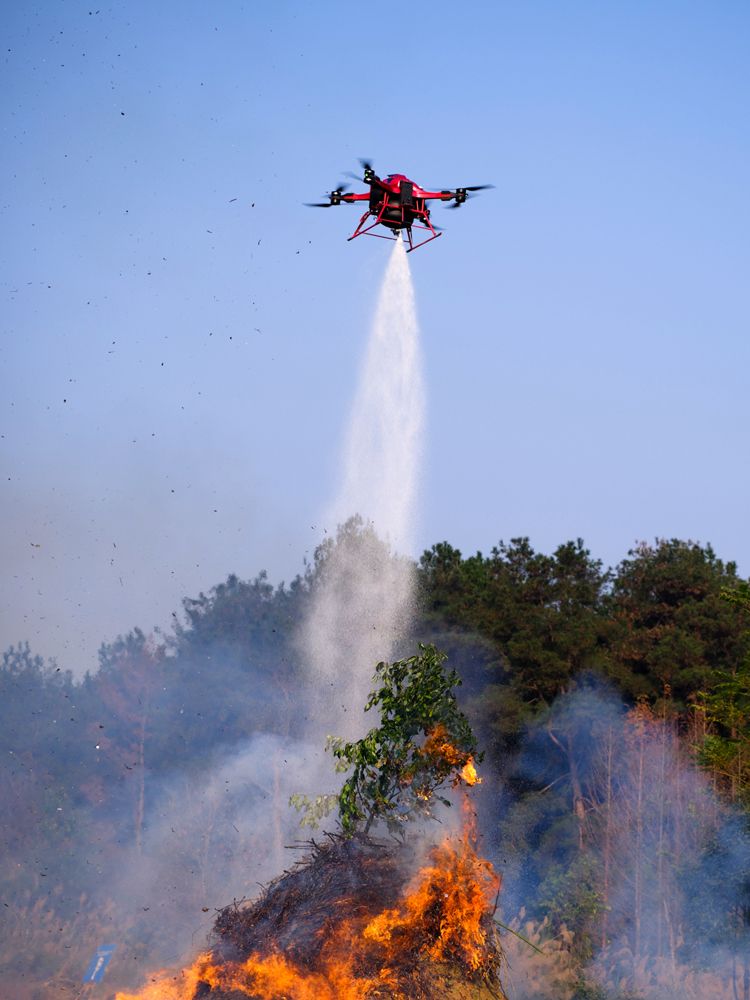 12月26日,成都市蒲江林区,四川省森林消防总队特勤大队消防员操控多架消防无人机参与灭火演练,尽可能减少人与火近距离接触,确保安全灭火。