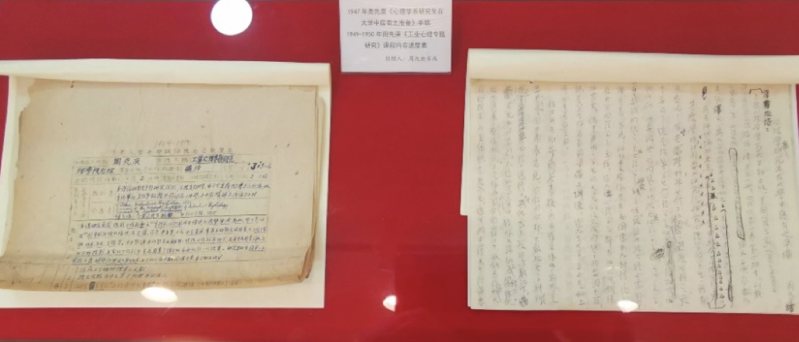 周先庚翻译《心理学系研究生在大学中应有之准备》的手稿和《工业心理专题研究》课程内容进度表。清华大学供图