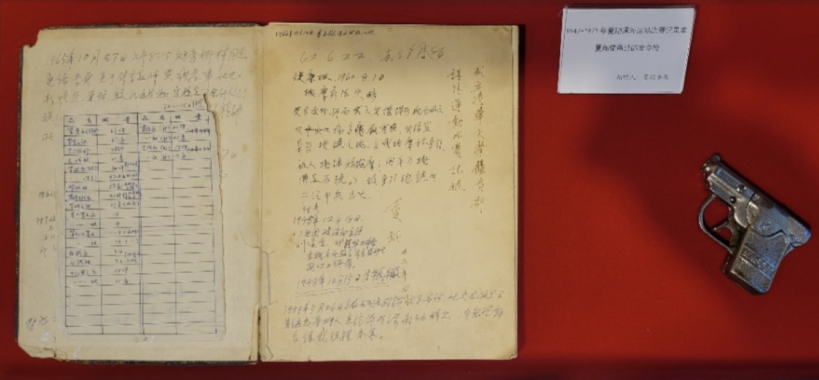 夏翔留下的1947-1971年课外运动比赛记录本和担任全运会、大运会等众多运动会总裁判长的发令枪。清华大学供图