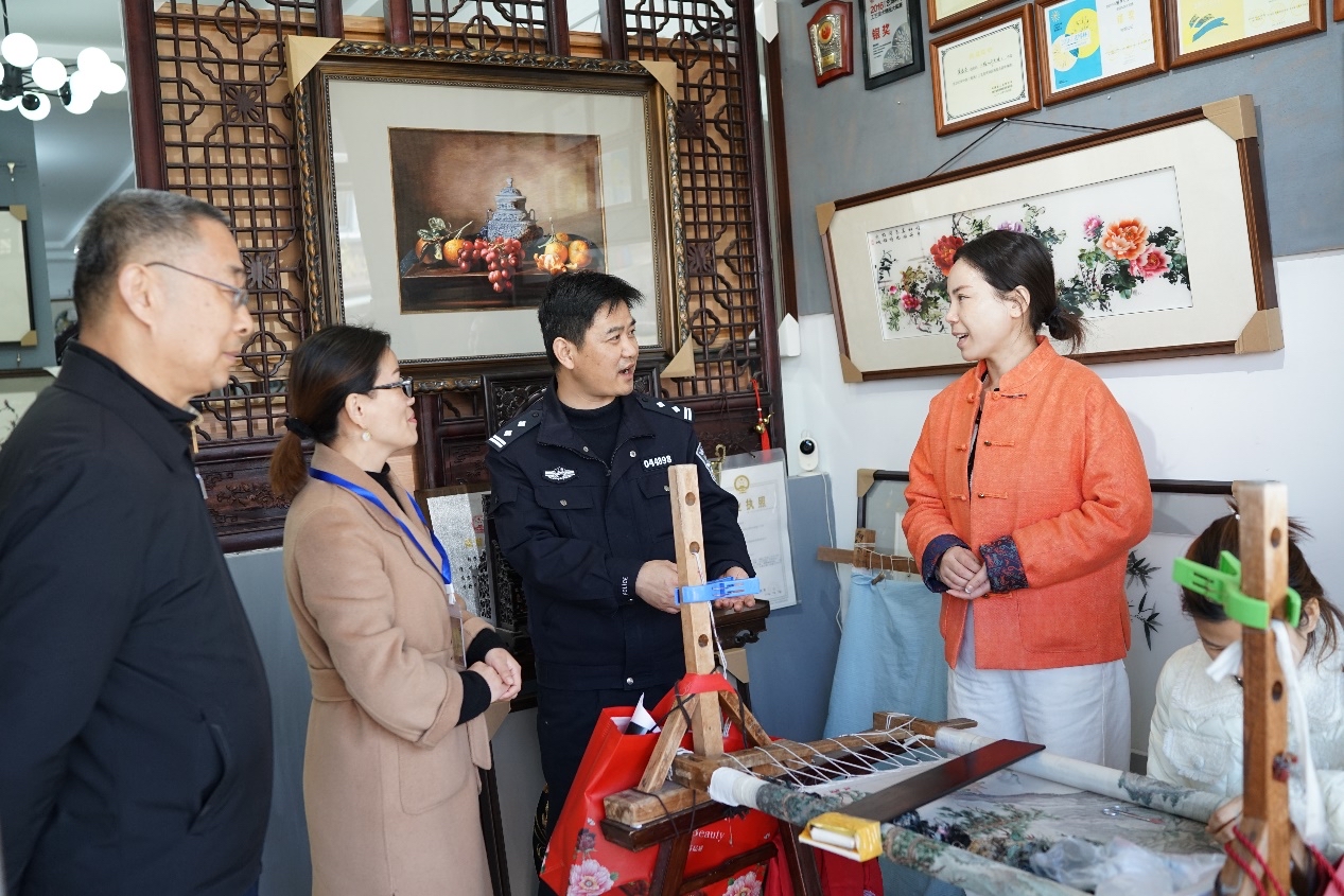 陈现志走访商铺为绣娘普法。图源:苏州警方