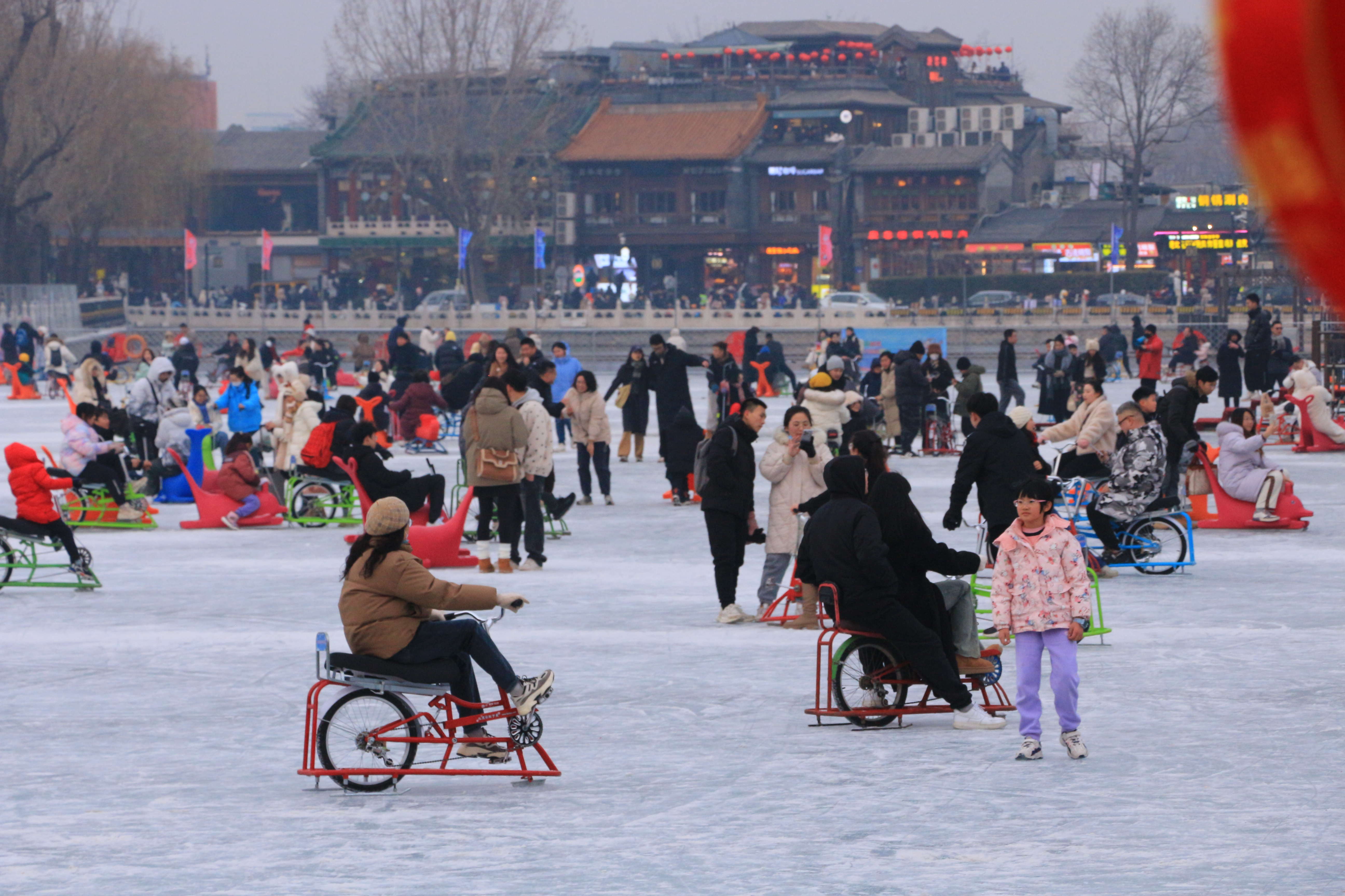 1月1日,北京什刹海冰场人山人海,不少市民游客正在滑冰。图/IC photo