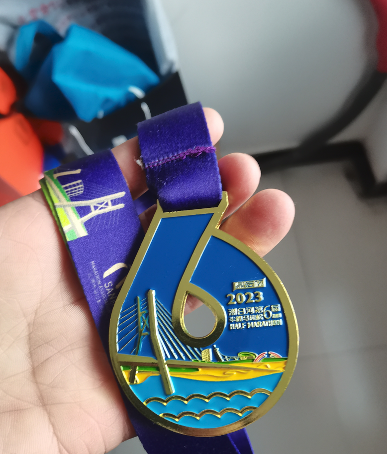 潮白河半程马拉松组委会公布的完赛奖牌视觉图。 图/社交媒体