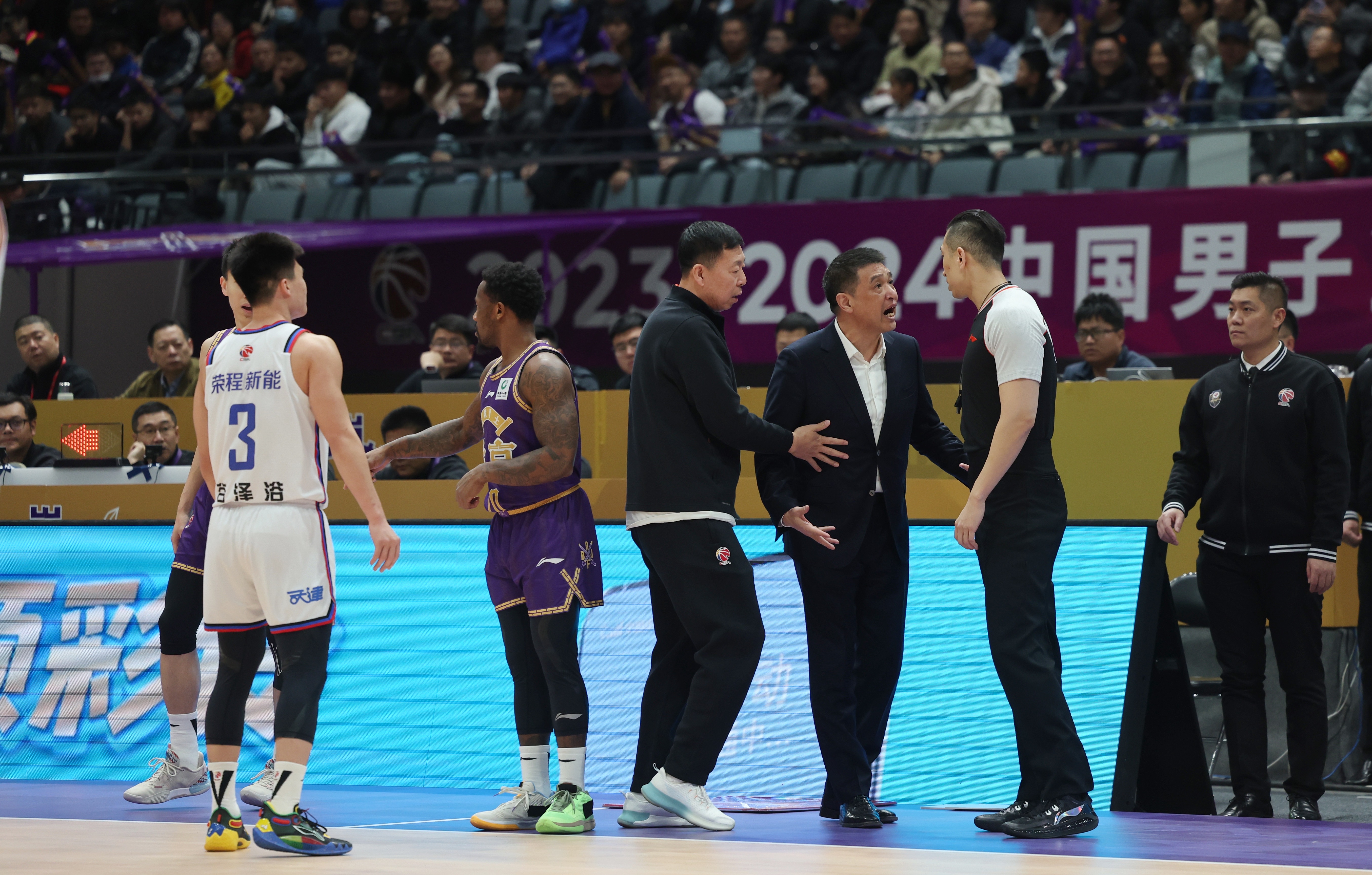 北控主帅闵鹿蕾与裁判理论。 新京报记者 王飞 摄