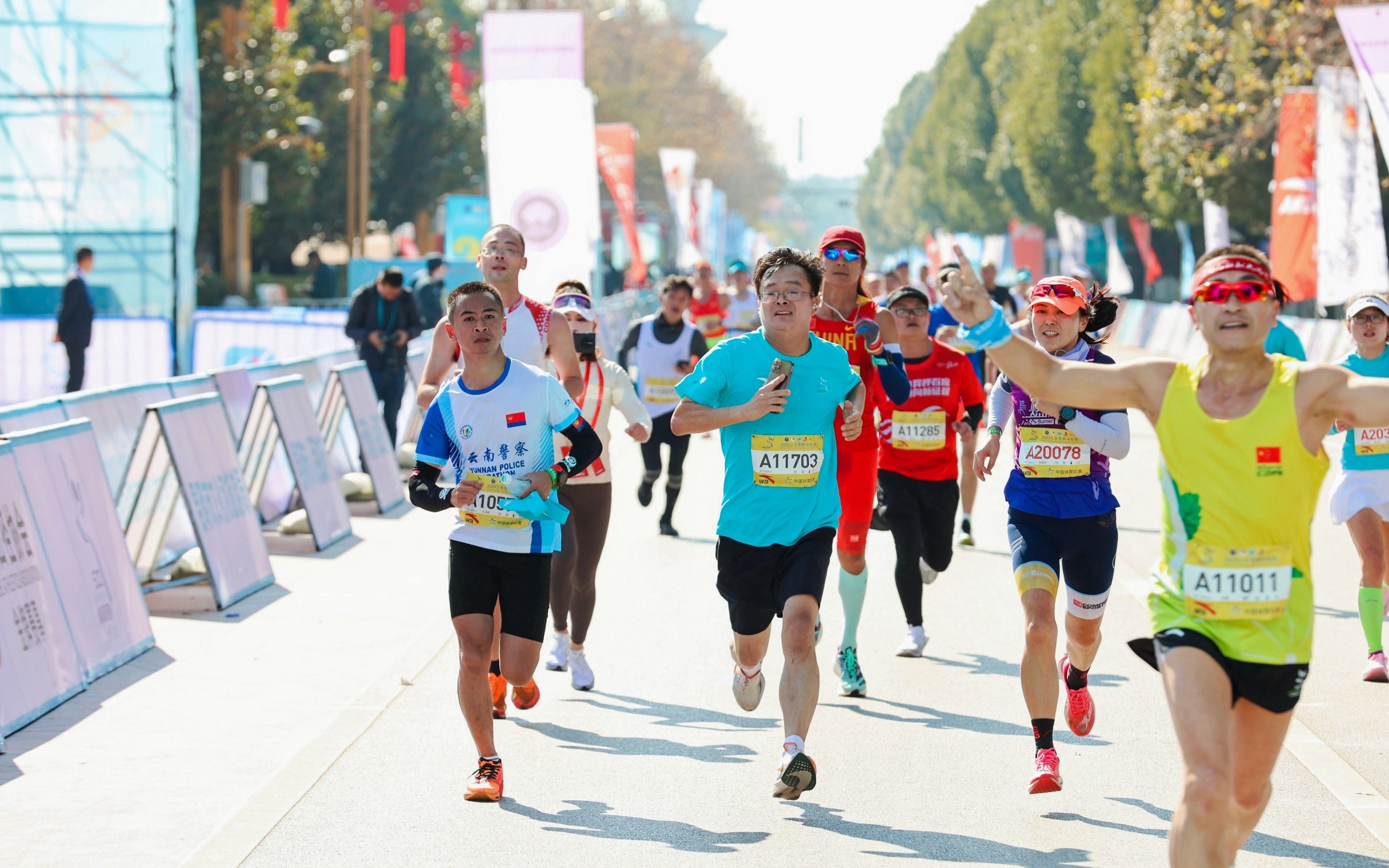 昆明市市长刘佳晨(身着蓝色上衣)正在参赛。图/2023上合昆明马拉松公众号