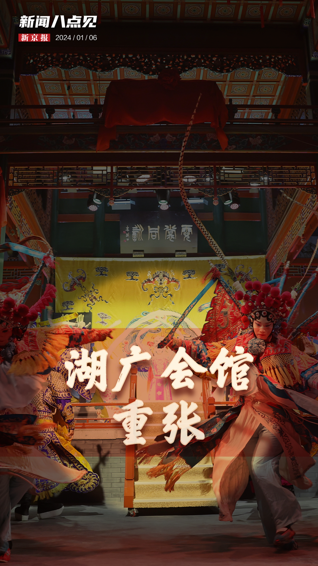 1月5日晚,一场寓意万事诸顺的京剧《开台》奏响“会馆有戏”之湖广会馆的焕新华章。湖广会馆始建于1807年,是国家级重点文物保护单位,集会馆文化、戏曲文化、士人文化三大文脉于一身,是北京现存拥有戏楼的重要会馆之一。2021年下半年以来,西城区根据会馆旧址建筑和空间特点,对会馆的空间资源进行了盘活,探索实现会馆的市场化运作。视频>>>