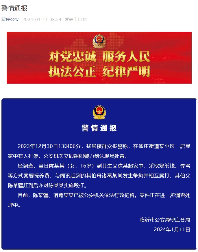 16岁女生讨要抚养费被亲戚殴打?山东临沂警方通报