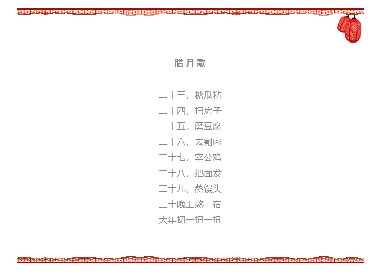 还有一句流传很久的俗语:“官三民四船五”说的是在古代过小年的时间,官宦之家腊月二十三,寻常百姓腊月二十四,水上船家腊月二十五,而北方受到“官三”影响较大,渐渐调整了小年的时间安排。