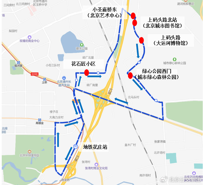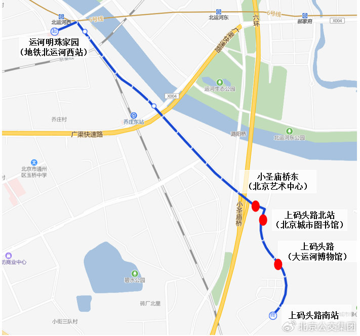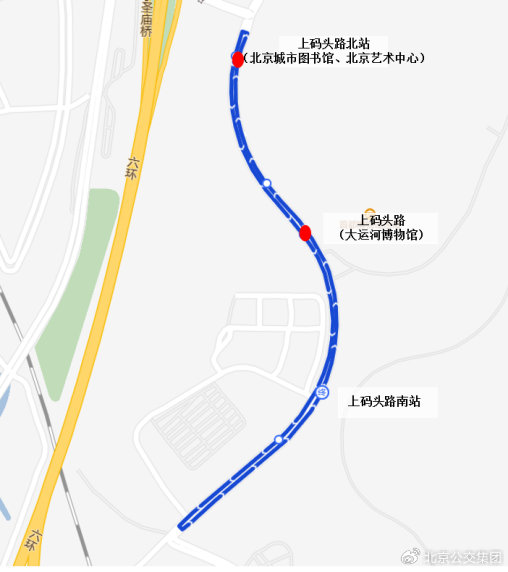 沿途设站:上码头路南站-上码头路(大运河博物馆)-上码头路北站(北京城市图书馆、北京艺术中心)