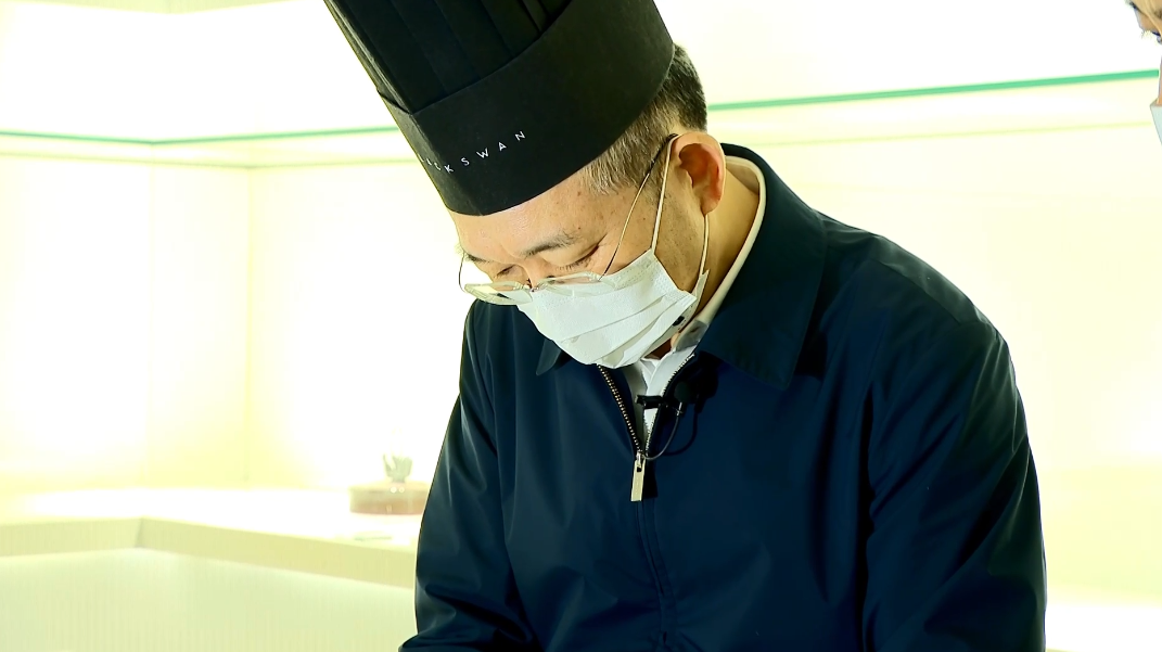 放好精致小巧的黑天鹅装饰后,龚书记完成了亲自diy的黑天鹅蛋糕,他不禁问道:“做好这么一个蛋糕大概需要多少道工序?”罗红艺术馆五星裱花车间主任甯由东直言:“像这款蛋糕,每一对天鹅上面的羽毛,都是要经过我们纯手工划上万刀,才能展现出这种美感的。”
