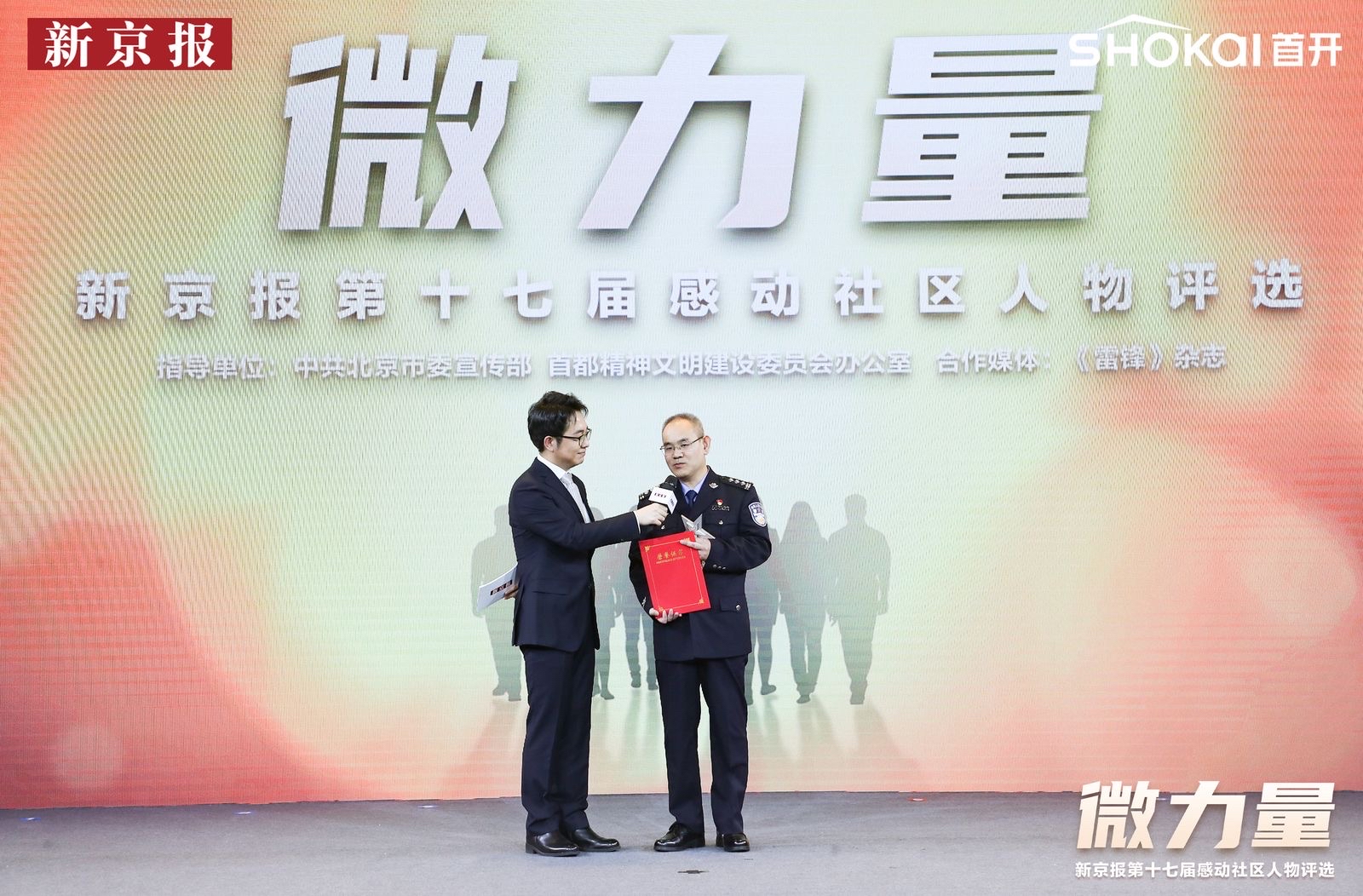 新京报讯(记者 张静姝)1月16日,在“微力量——新京报第十七届感动社区人物评选活动”颁奖典礼上,北京市公安局交管局交通事故处张雷获得“感动社区人物楷模奖”。