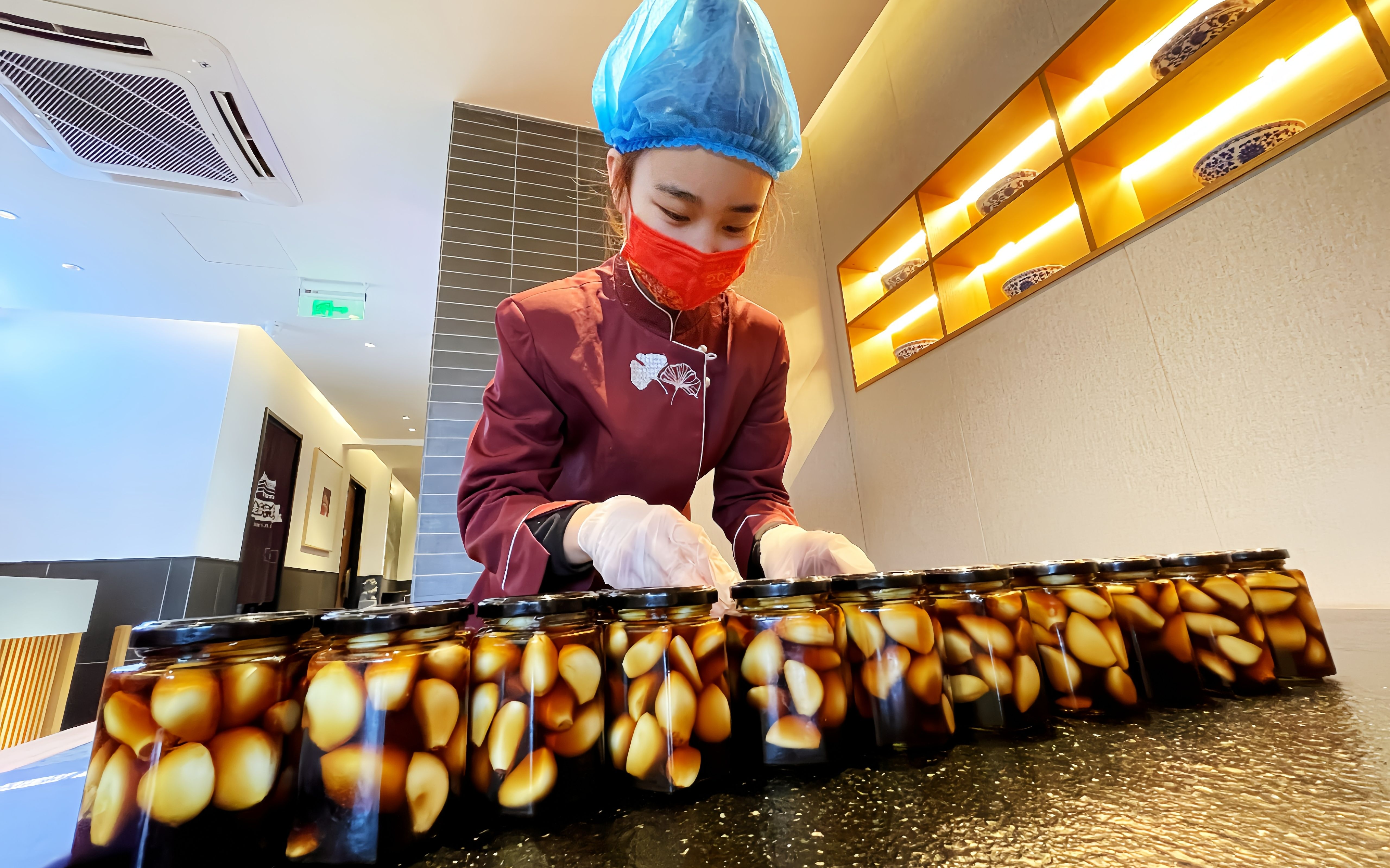 北京华天旗下的惠丰饺子楼,今年首次推出“专属定制版”泡腊八蒜活动,顾客可以亲手泡蒜、写祝福,做成自己独一无二的腊八蒜。