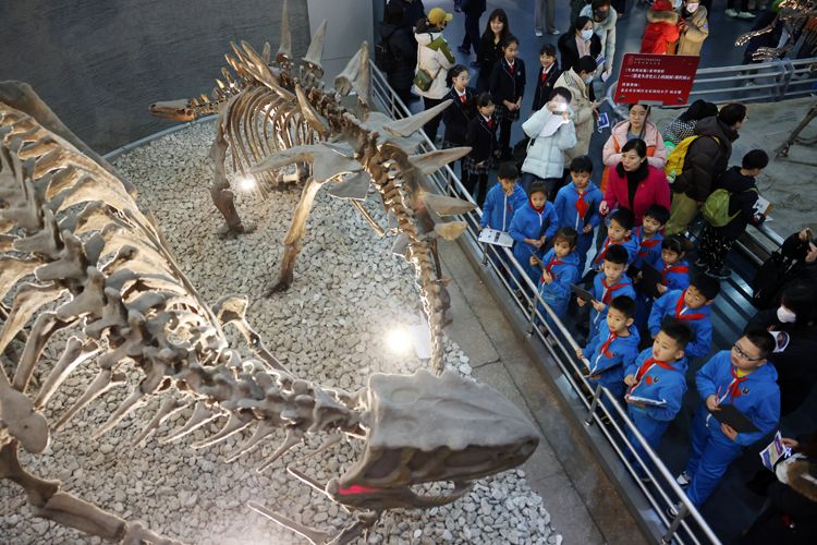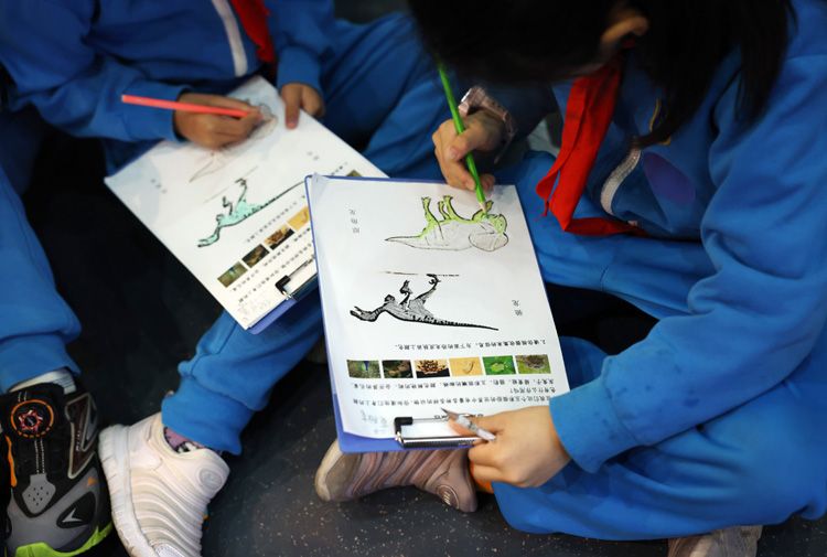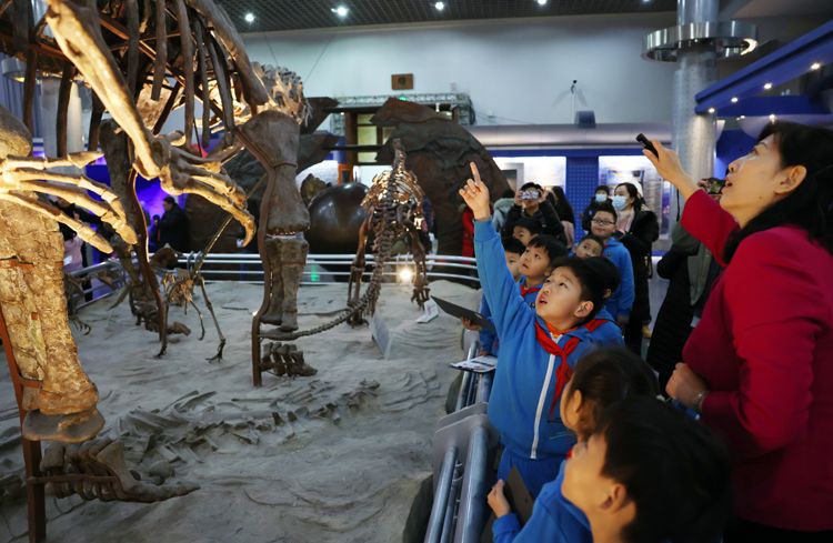 在国家自然博物馆“古爬行动物”展厅,小学生被恐龙化石所吸引。社会大课堂走进自然博物馆能让学生更加直观地观察生物学特征的细微之处,增加参与性和互动性,使学生学得有趣,记得扎实。