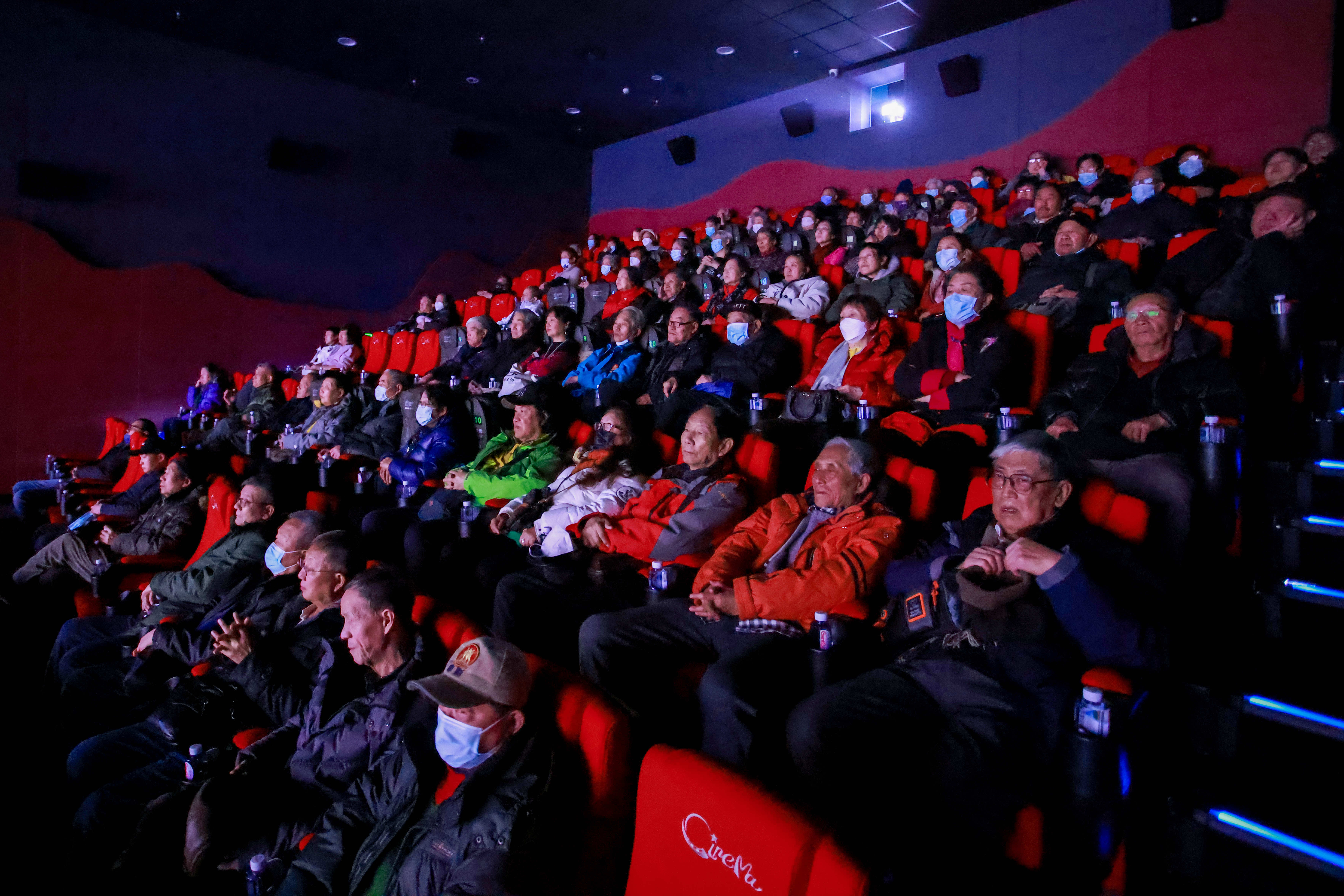 戏曲爱好者一同在影院观看《群英会·借东风》。