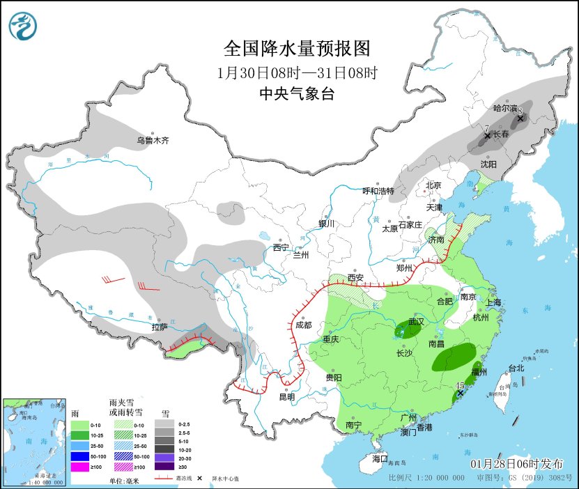 新京报讯 据中央气象台消息,中央气象台最新预报,未来三天,降雨主要出现在南方地区,尤其是明天(29日)江南、华南部分地区有中到大雨,局地暴雨;华北中南部、黄淮中西部等地大气扩散条件转差。从1月31日开始,雨雪会逐步在中东部地区展开,陕西、山西、河南、山东会首当其冲,随后降雪区域还会进一步南压扩大,长江以南地区也将出现强降雨,此次雨雪过程将持续至2月5日,对春运出行十分不利,提醒公众要合理安排出行计划。