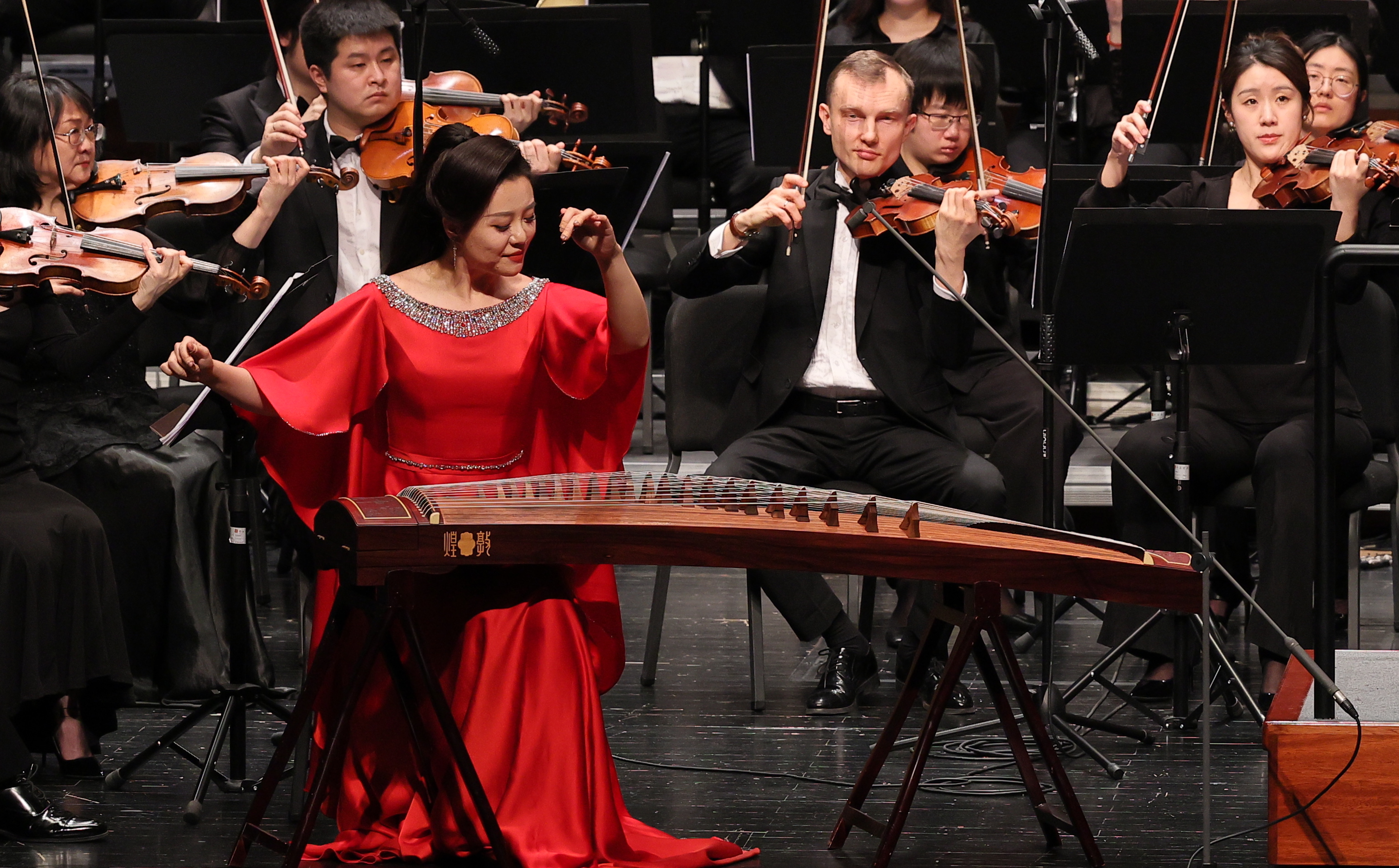新京报讯(记者刘臻)1月27日,由中国音乐学院出品、中国音乐学院艺术实践中心制作的“中国音·中国乐·中国年”——“龙‘乐’新春2024新春专场音乐会”于中央歌剧院剧场上演。指挥家金刚携手中国音乐学院交响乐团,中国音乐学院管弦系副教授、小提琴演奏家黎雨荷,中国音乐学院国乐系古筝专业博士研究生曹照照,在中国音韵中迎接龙年新春的到来。中国音乐学院党委书记王旭东,中国音乐学院党委常委、纪委书记马春成,中国音乐学院党委常委、副院长黄虎,中国音乐学院党委常委、副院长王萃,中国音乐学院党委常委、党委组织部部长张嫄,中国音乐学院党委常委、党委宣传部部长吴哲到场观演。