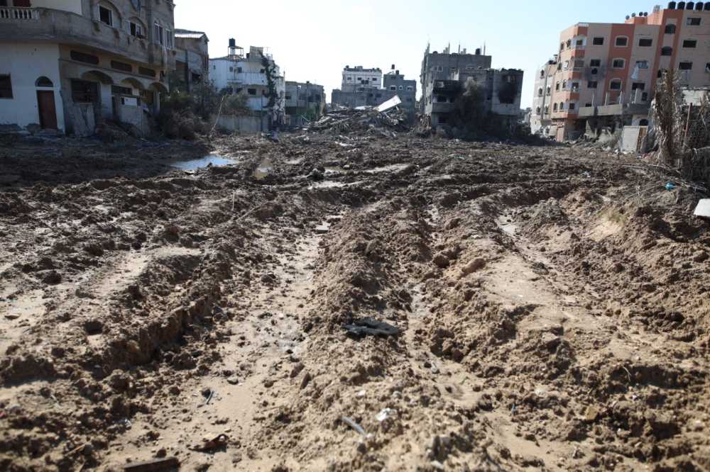 这是1月26日在加沙地带中部迈加齐难民营拍摄的受损道路。新华社发