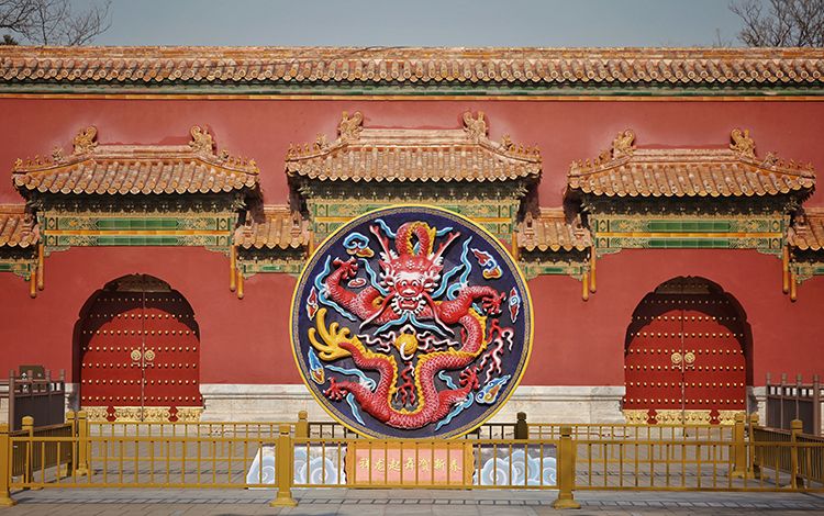 寿皇殿广场景观以“浮雕赏盘龙”为设计基础,结合龙、祥云等元素,完美契合寿皇殿的威严壮观和春节的喜庆热烈。