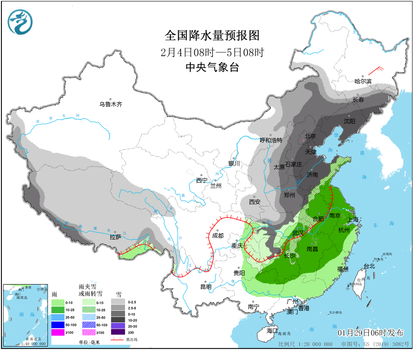 根据中央气象台发布的全国降水预报图,2月4日北京的雪可达中到大雪。北京市气象局工作人员介绍,降水落区图是完全依赖计算机模拟结果给出的,每天会调整两次。依据这张图,知道2月4日大概率降雪即可,具体量级和时间仍需商榷。