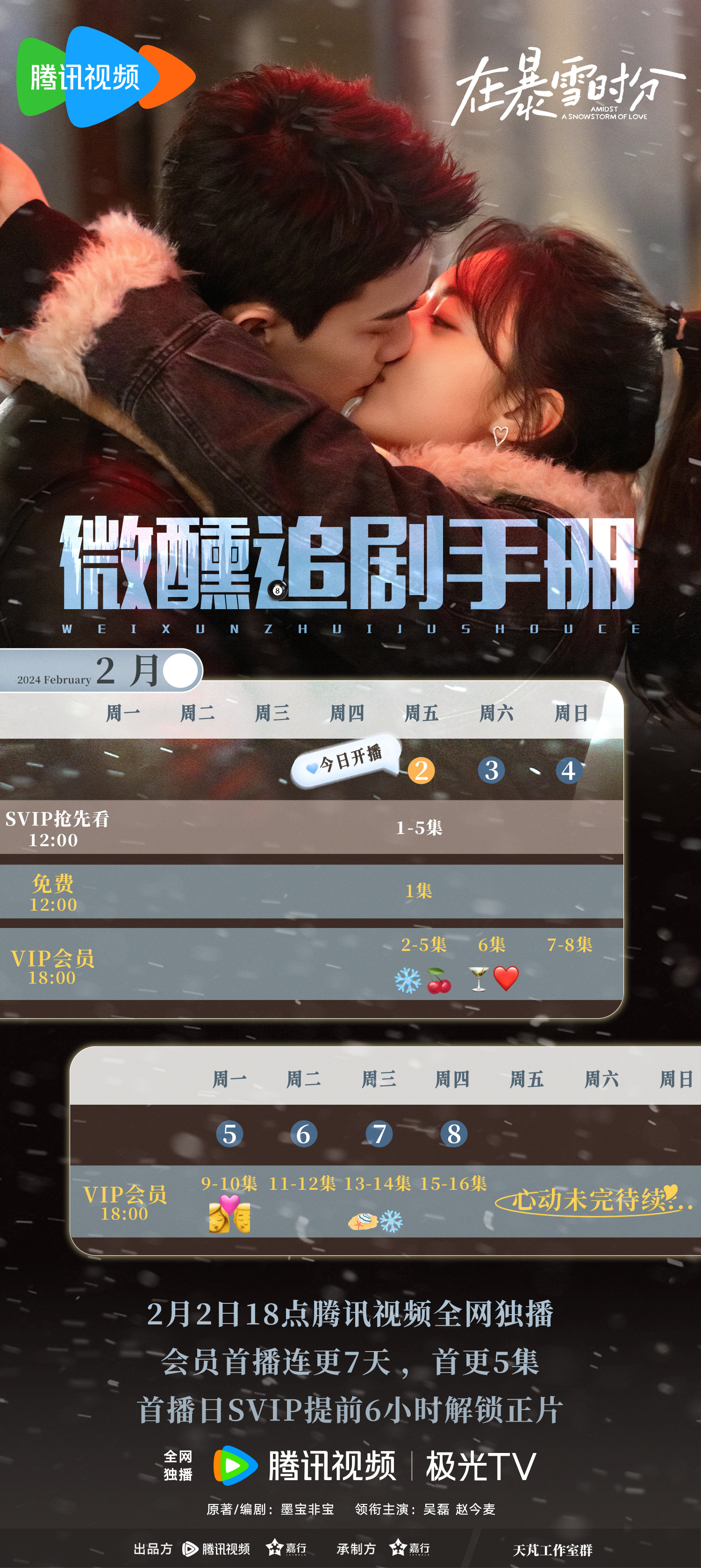 吴磊、赵今麦《在暴雪时分》发布追剧日历,会员首播连更7天