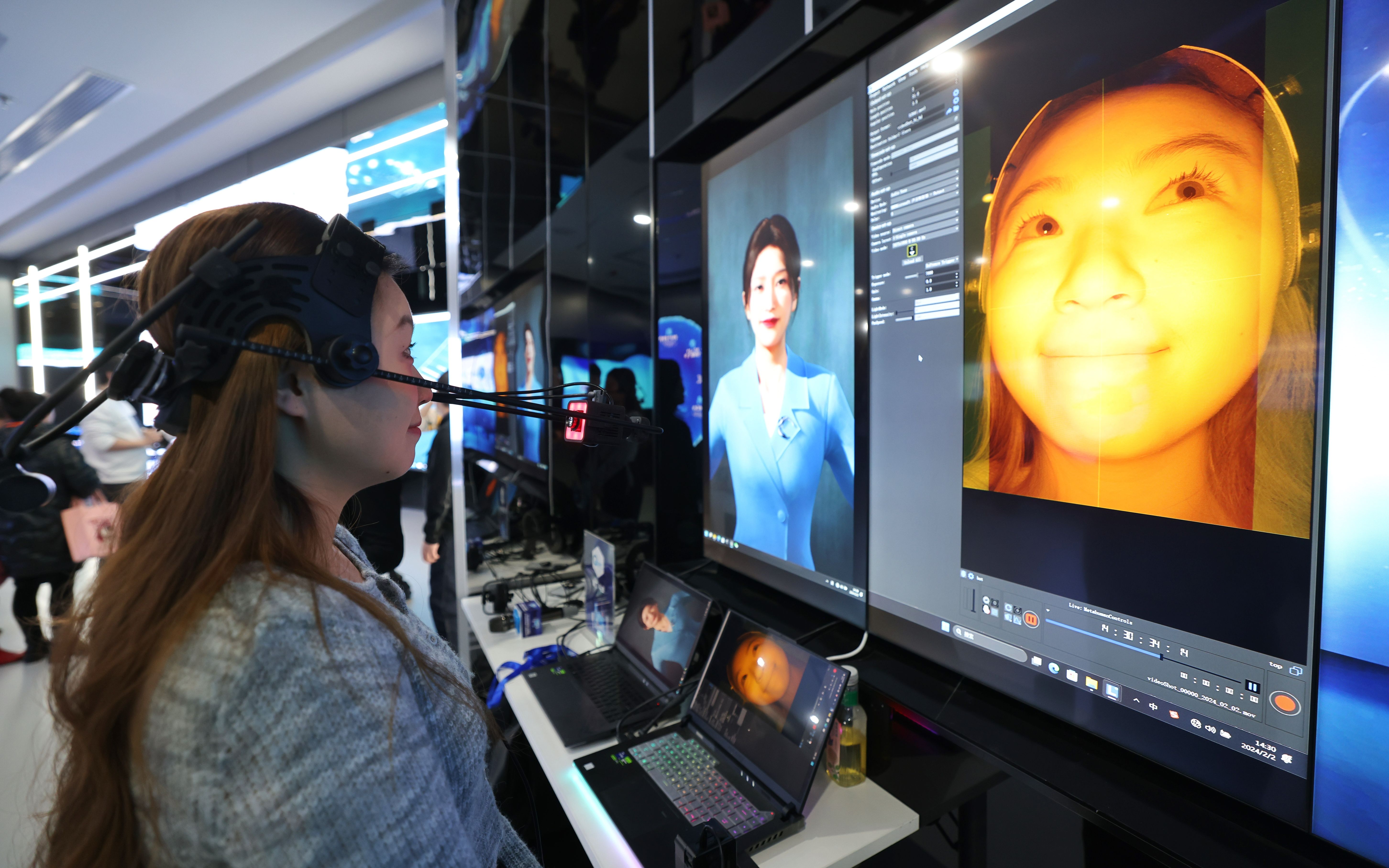 聚力维度单目摄像头数字人捕捉技术展示。新京报记者 王贵彬 摄