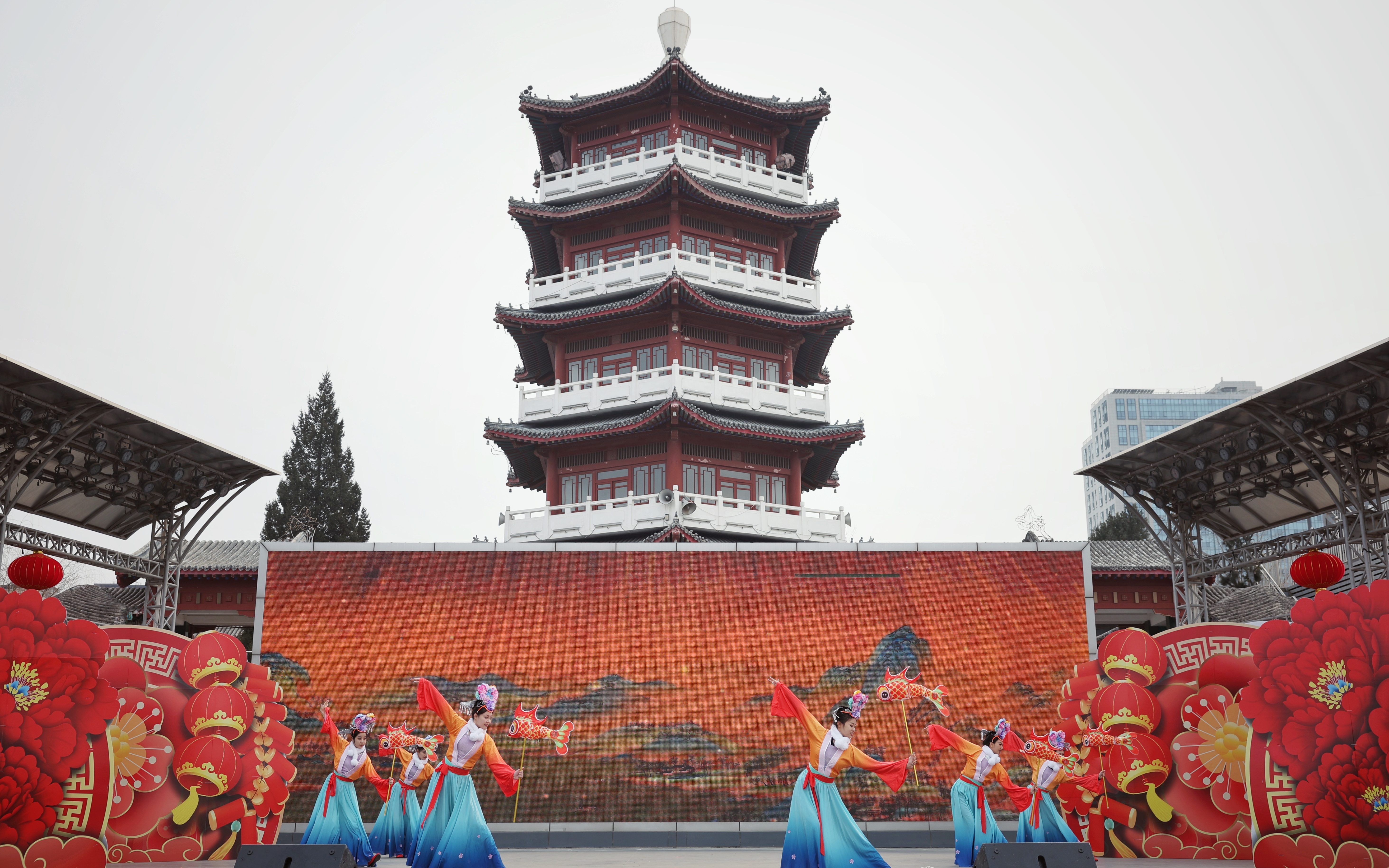 新京报讯(记者曹晶瑞 薛珺)2月2日,农历腊月二十三,北方小年,平谷区在世纪广场桃花大舞台举办“龙腾盛世迎新春”拜年演出。此项活动作为2024年春节期间首个群众参与的大型线下活动为春节系列民俗文化活动拉开序幕。
