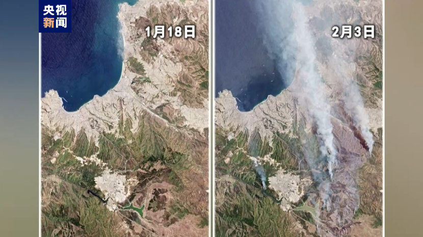 智利森林火灾致超百人死亡 火灾前后卫星对比图触目惊心
