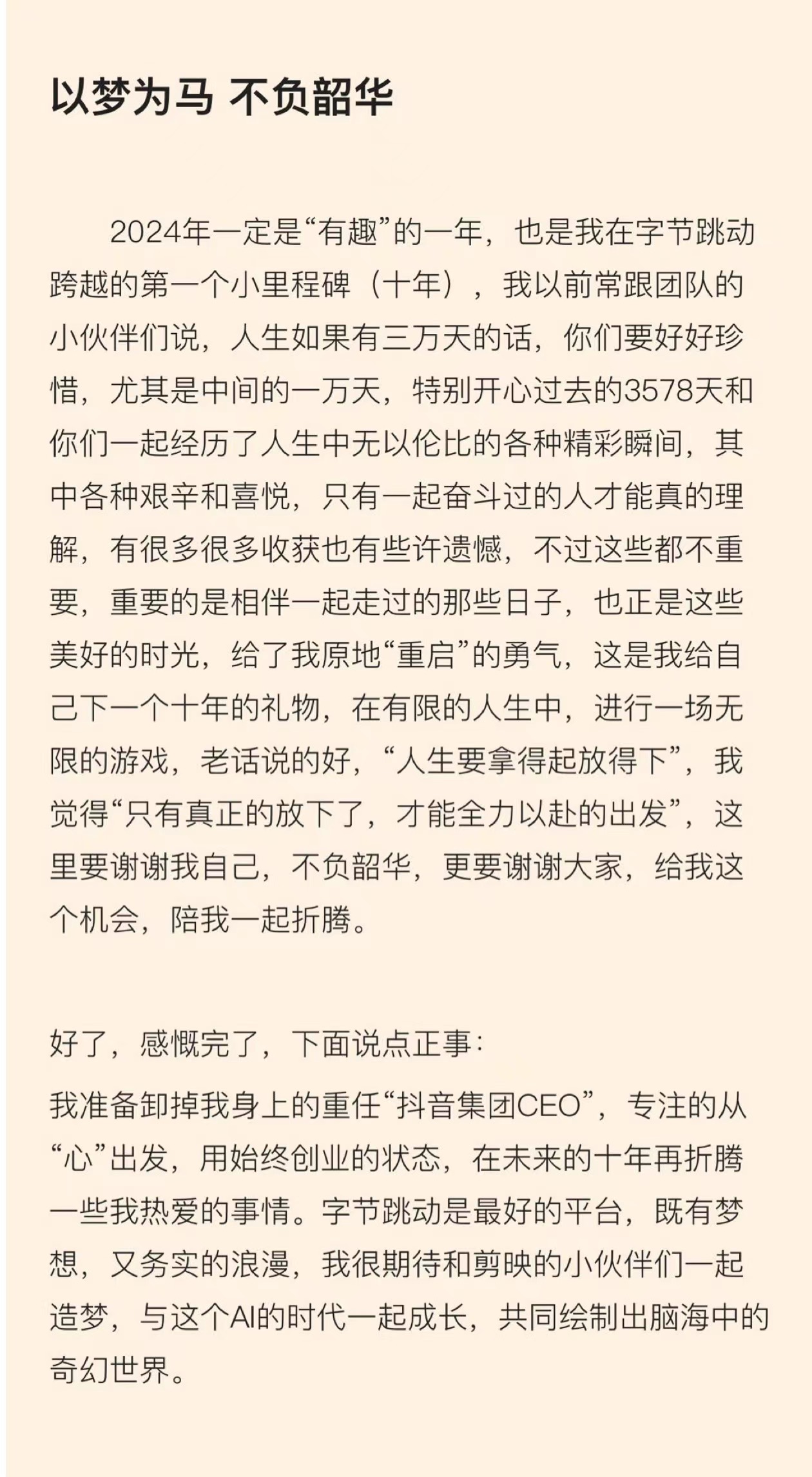 张楠辞任抖音集团CEO,“内部创业”聚焦剪映发展