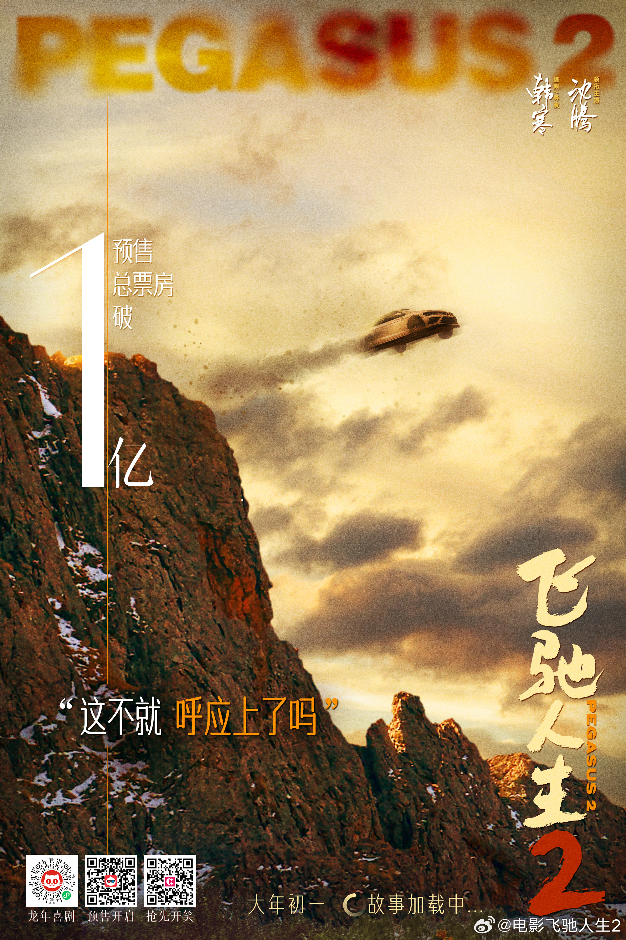 电影《飞驰人生2》由韩寒编剧并执导,沈腾、范丞丞、尹正、张本煜、孙艺洲领衔主演,魏翔、贾冰特别出演,郑恺、冯绍峰友情出演,正在预售中,将于大年初一全国上映。影片主要讲述了驾校教练张驰(沈腾 饰)携潜力新人车手厉小海(范丞丞 饰)等人组成散装车队,笑料百出地出征最后一届巴音布鲁克拉力赛的故事。
