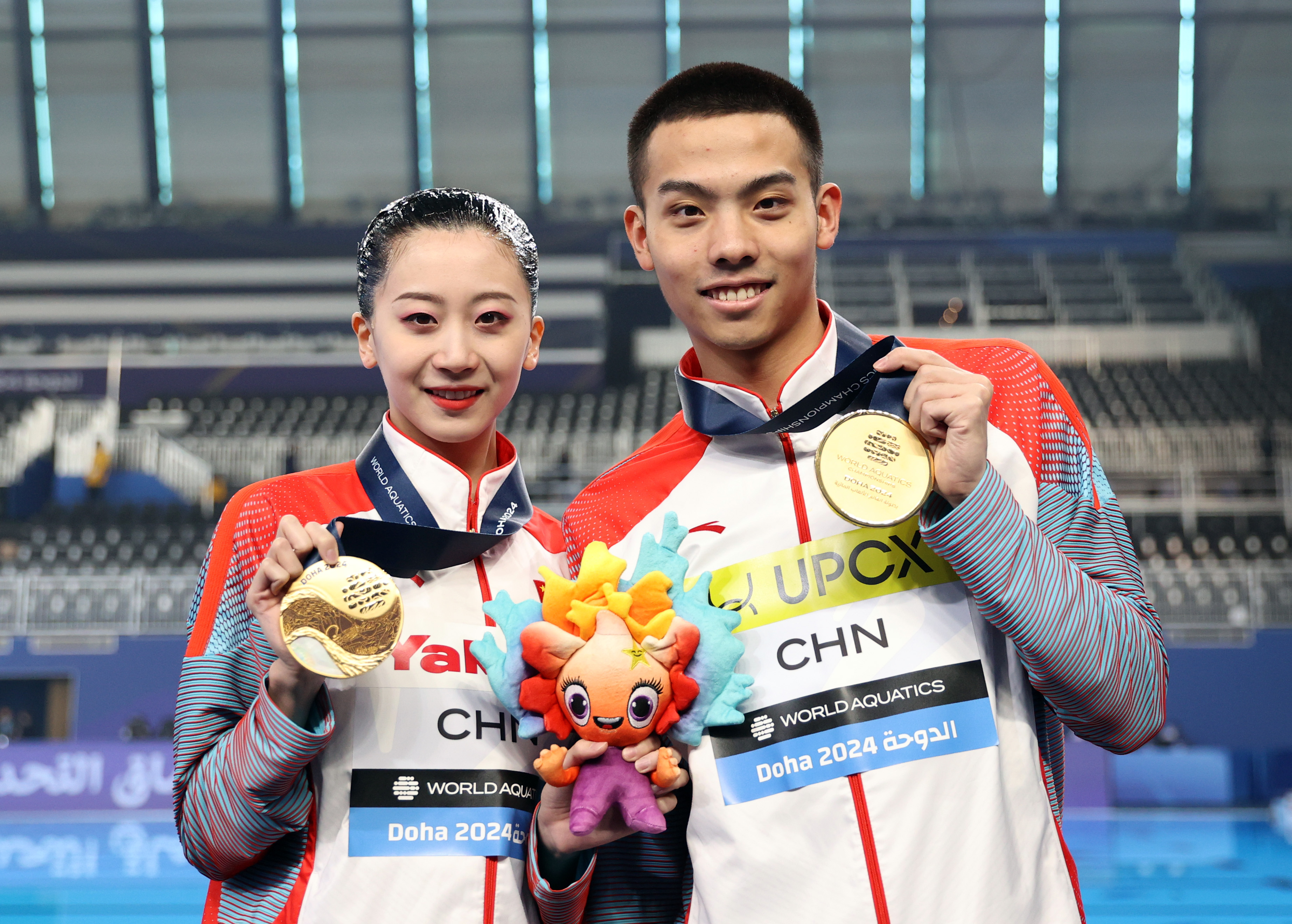 新京报讯 (记者周萧)北京时间2月11日凌晨,多哈游泳世锦赛跳水项目结束了最后一项决赛争夺,杨昊、曹缘包揽男子10米台冠亚军,帮助中国跳水队以9金收官。在10日进行的花样游泳收官战中,程文涛/石浩玙成功卫冕混双自由自选冠军,为中国花游队夺得赛事第7金。