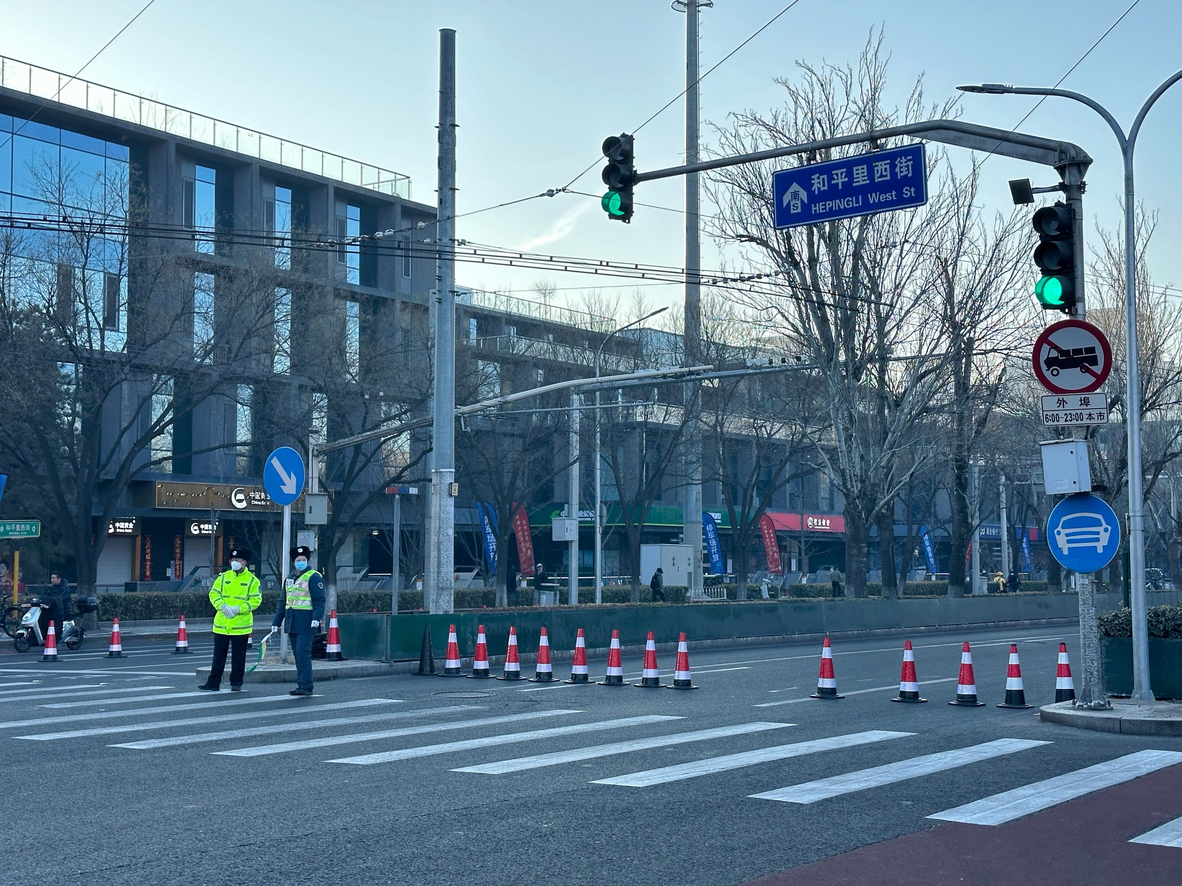 今天8时开始,地坛公园东门外的和平里西街采取交通管制措施。新京报记者 裴剑飞 摄