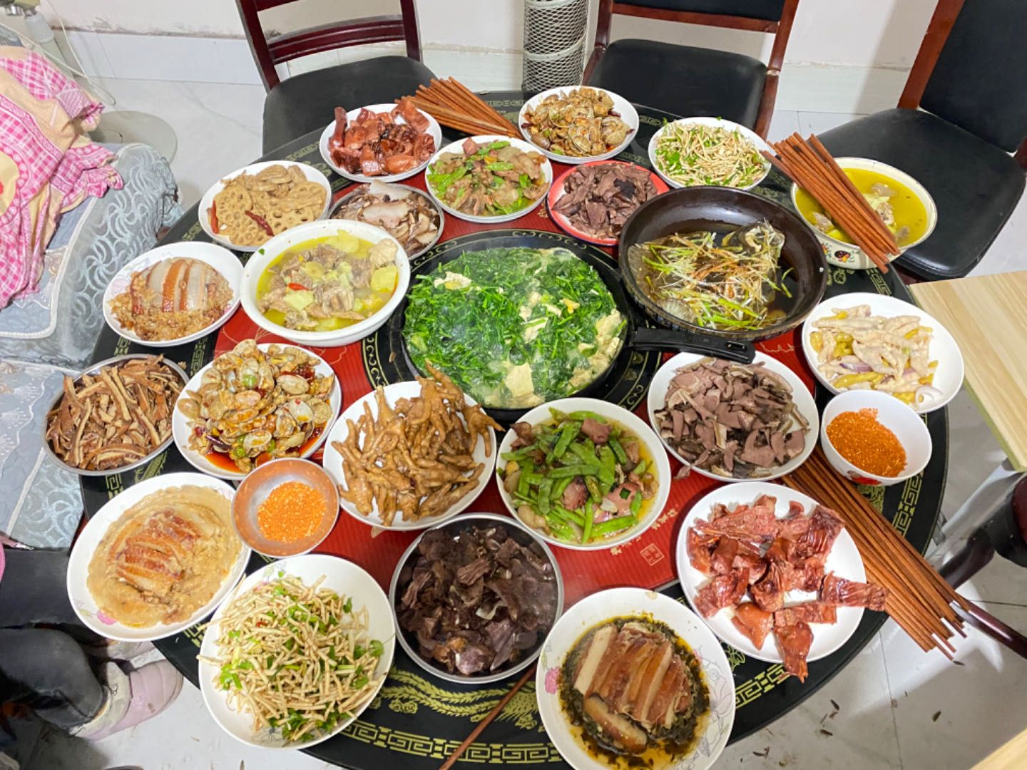 春节期间,石桥村村民的饭桌。新京报记者 陈静 摄
