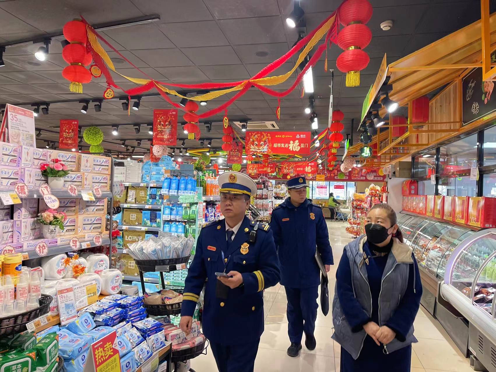 消防宣传员在超市进行检查。图源:海淀区消防救援支队