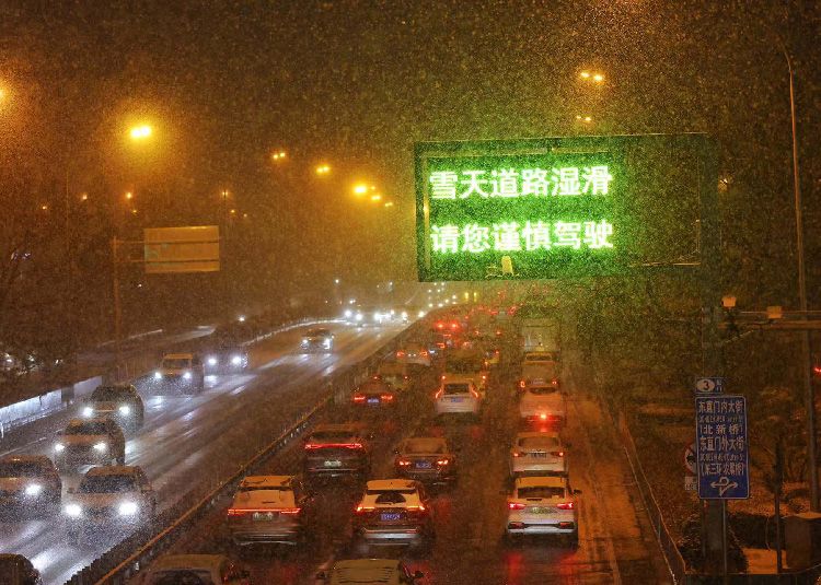 晚高峰遇龙年首场降雪,北京发布道路结冰黄色预警信号