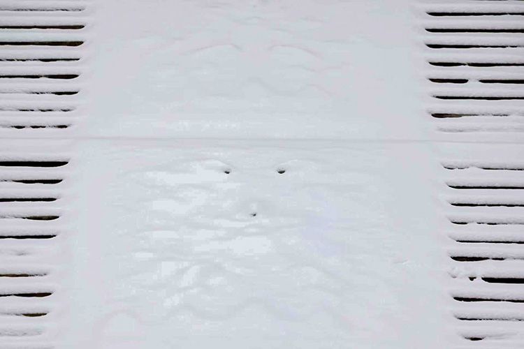 保和殿后巨大的云龙阶石被雪覆盖后只剩下“两只眼一张口”。