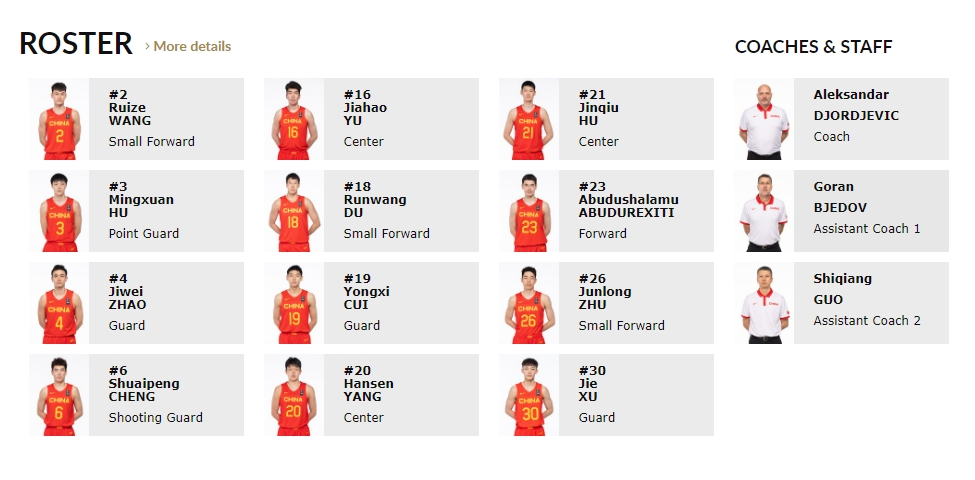亚洲杯预选赛中国男篮首场比赛12人名单确定。