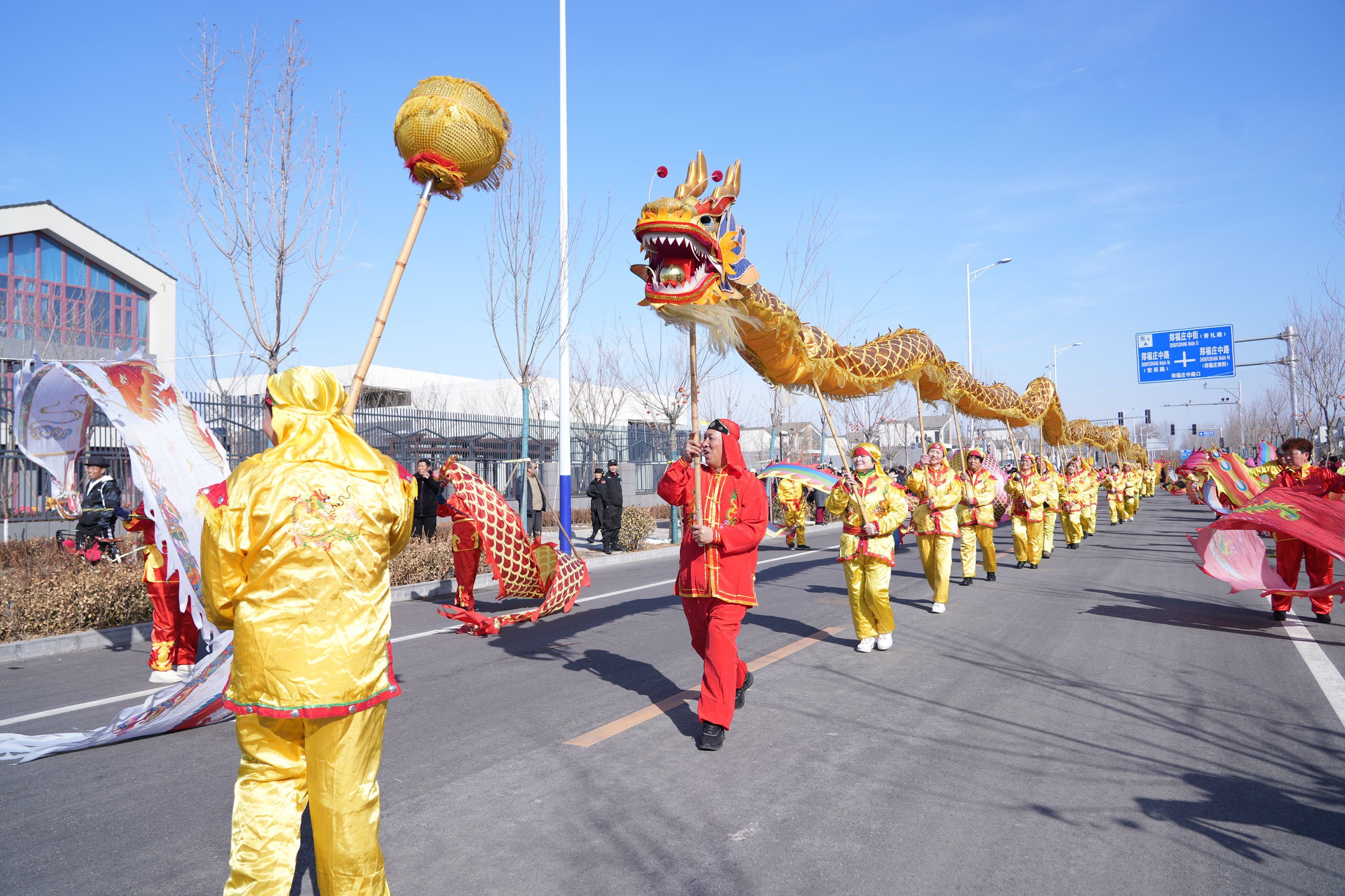 现场,一条50米长的金色巨龙闹元宵。大兴区安定镇供图